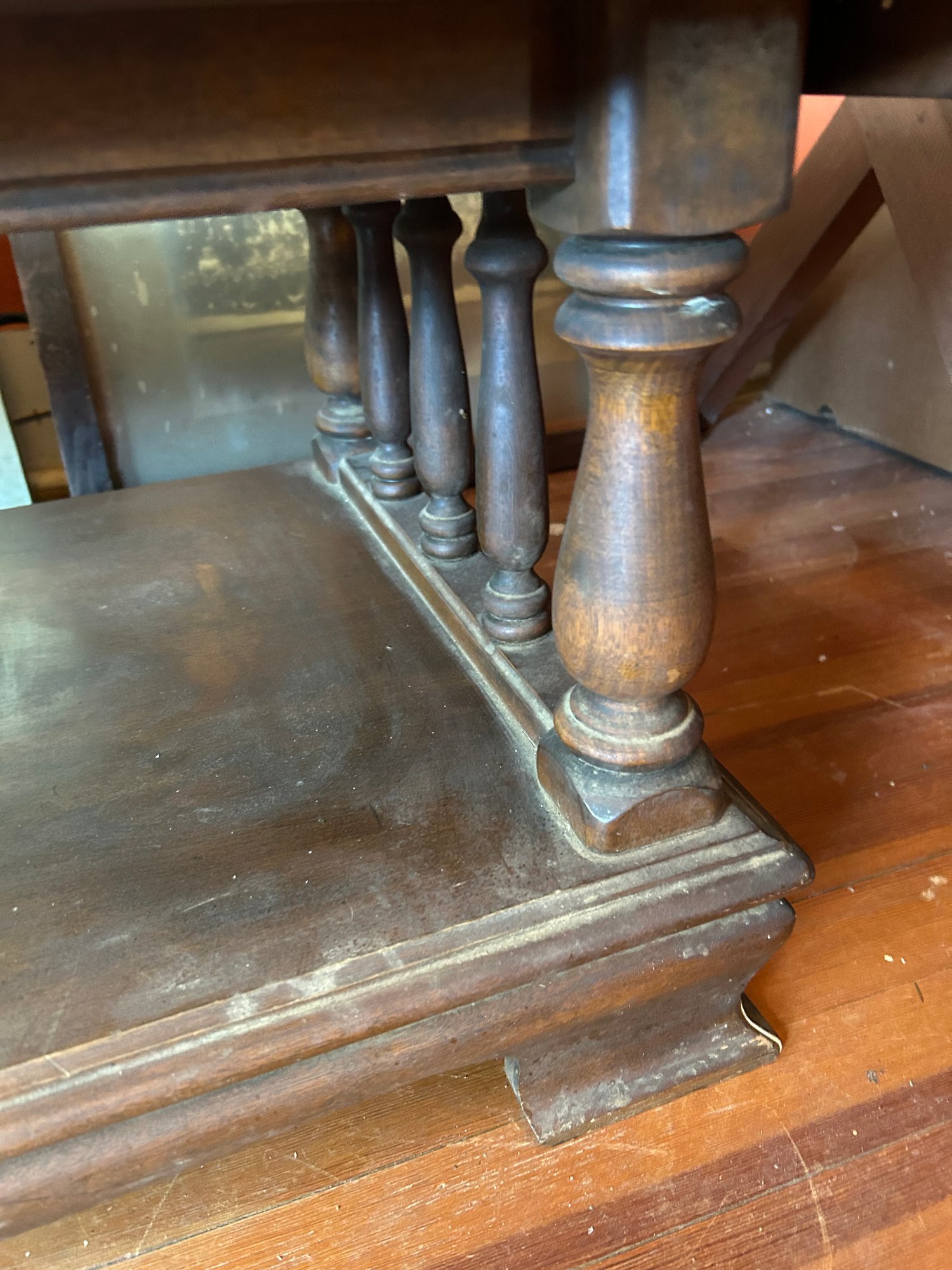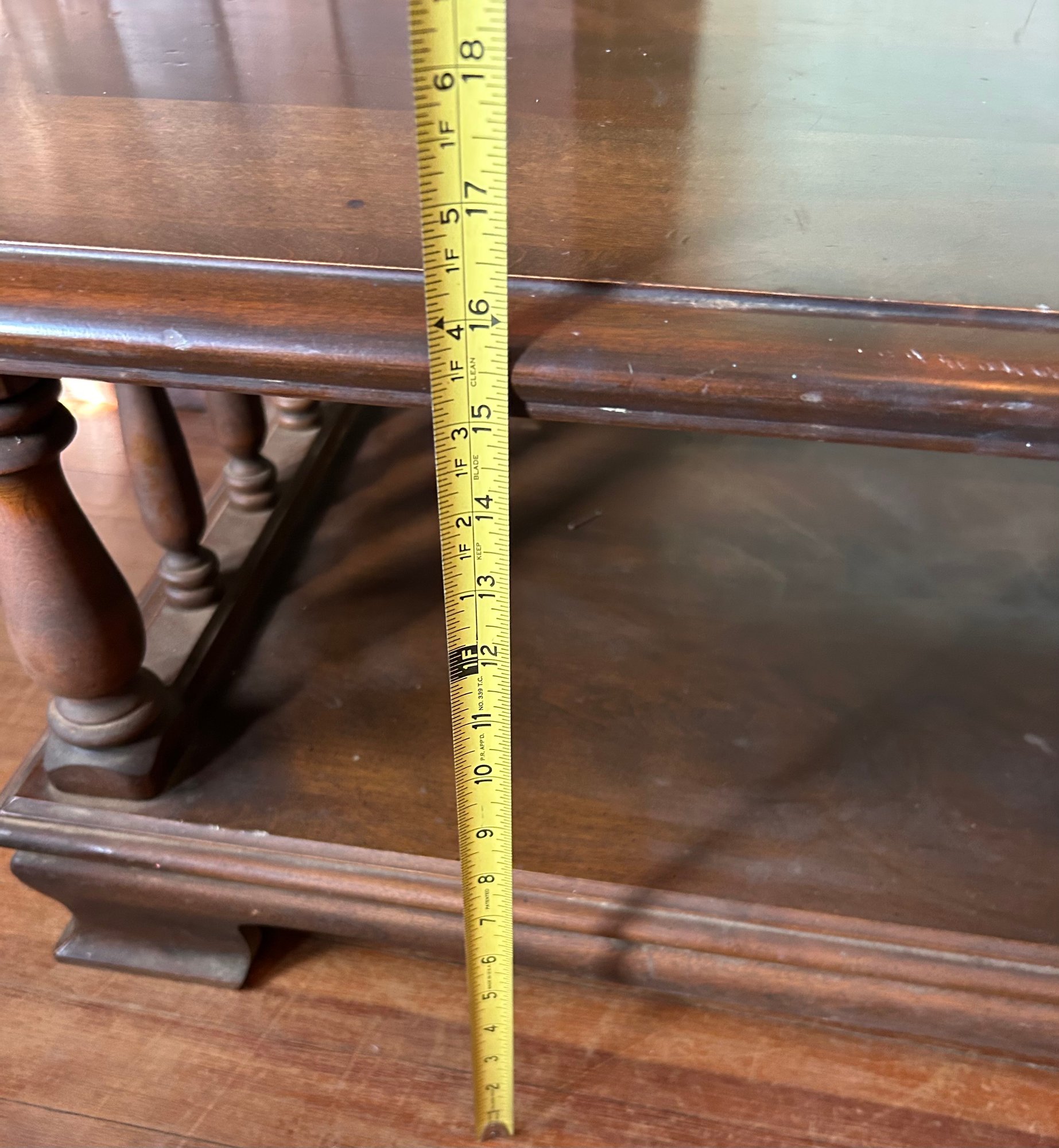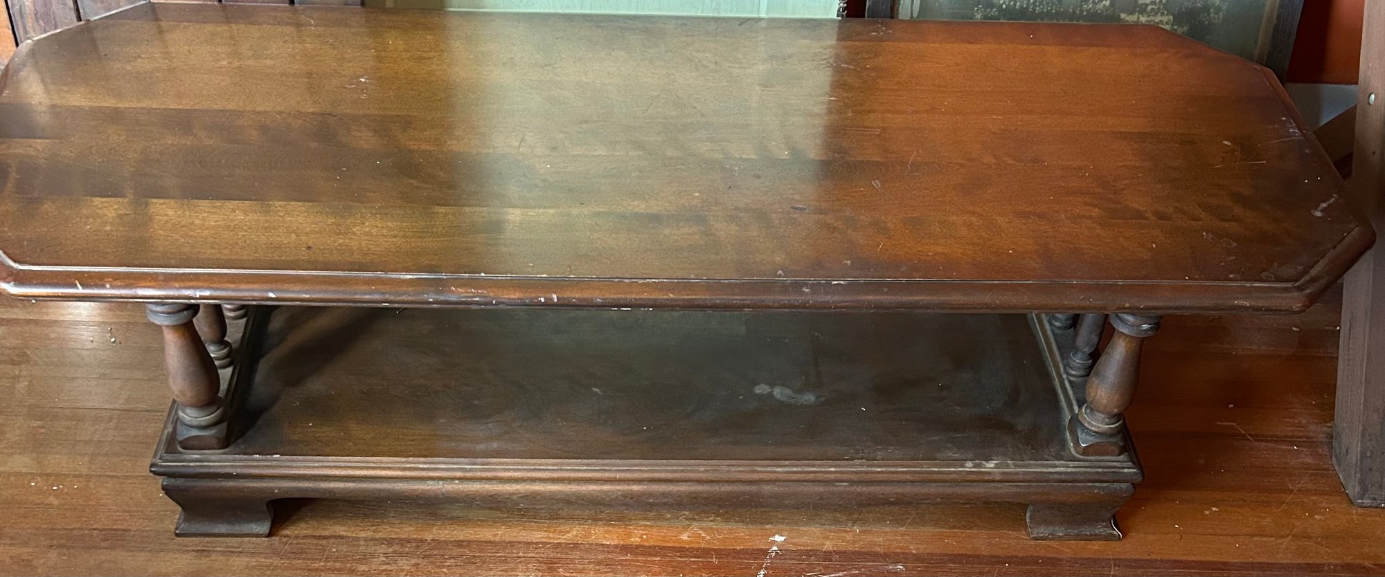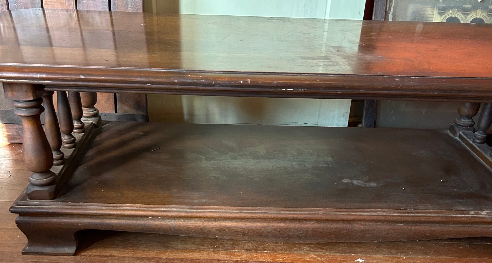 Vintage MCM Wooden 2-Tier Coffee Table With Pillars