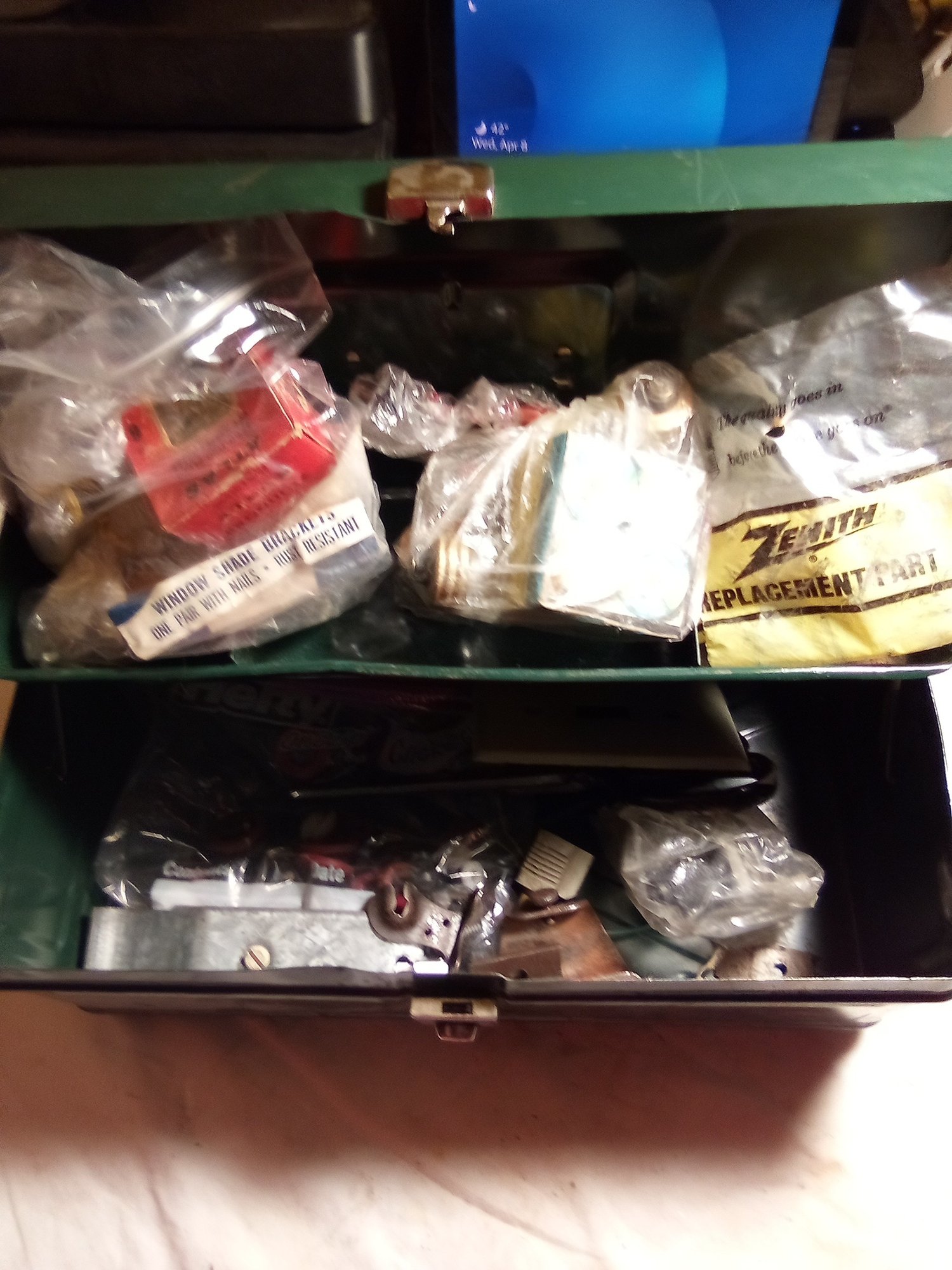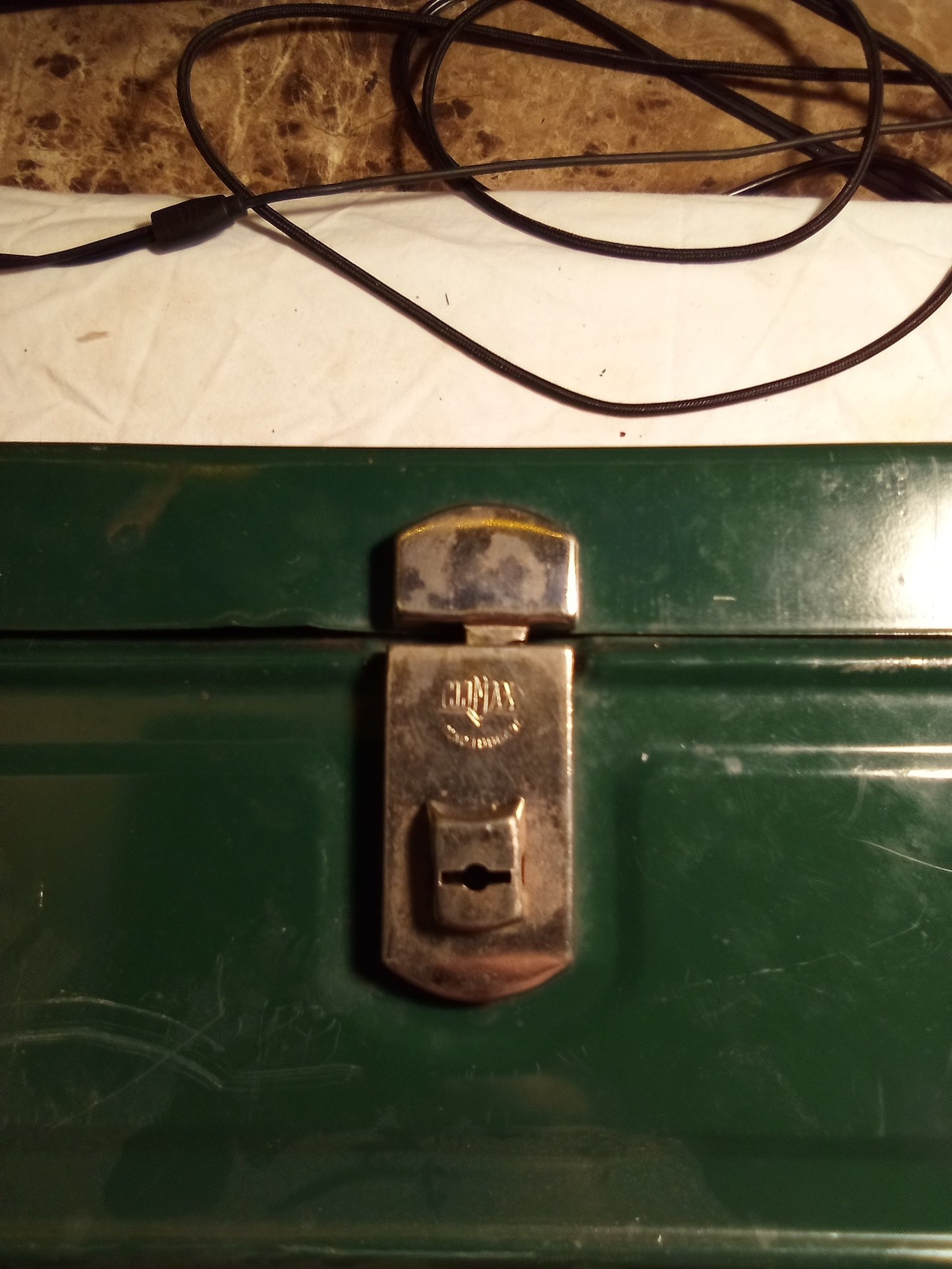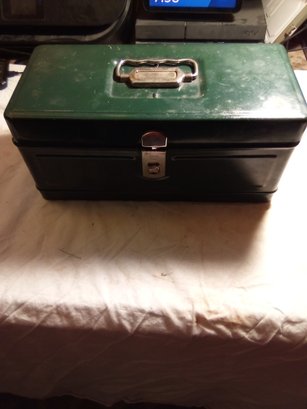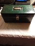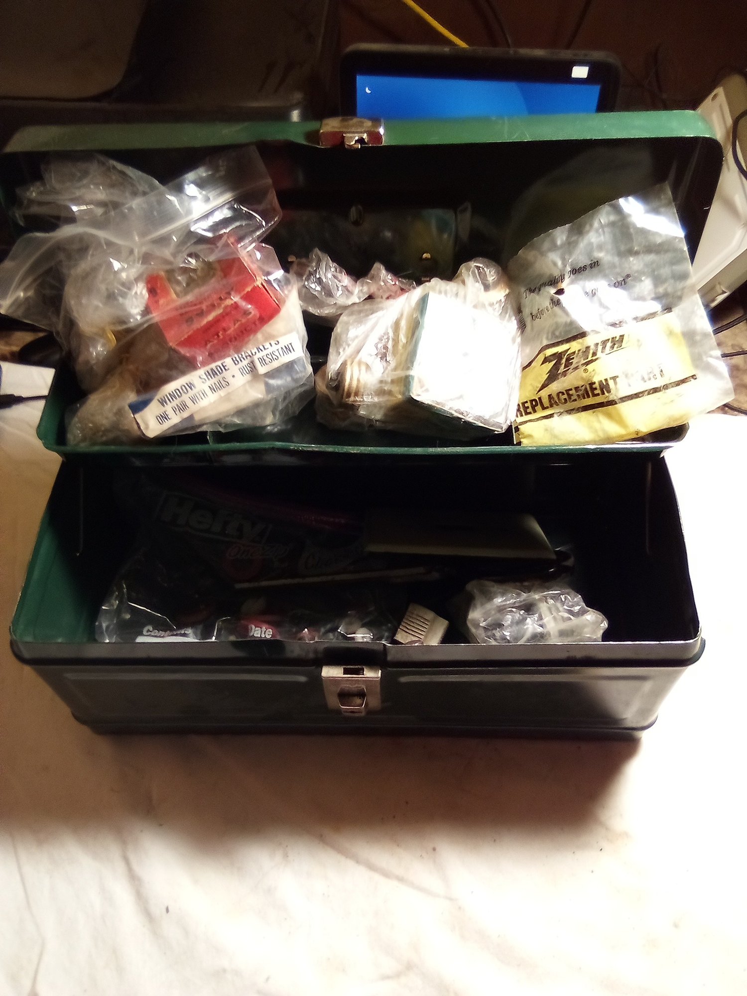 Vintage Metal Toolbox With Vintage Miscellaneous Parts Inside