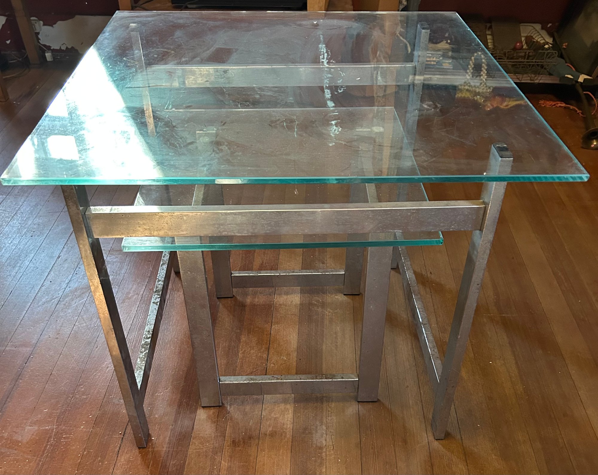 Vintage Pair Of Glass And Metal Nesting Tables