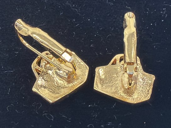 Vintage Pair Of Swarovski Blue Crystal Basket Earrings