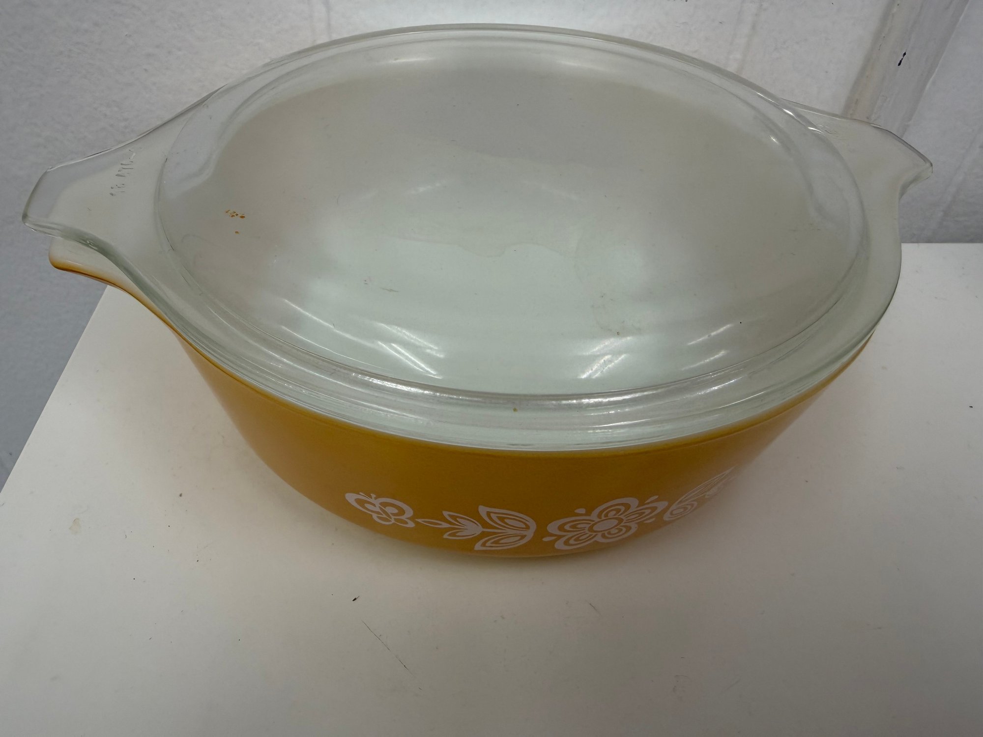 Vintage Pyrex Casserole Dish Features "the Butterfly Gold" Pattern