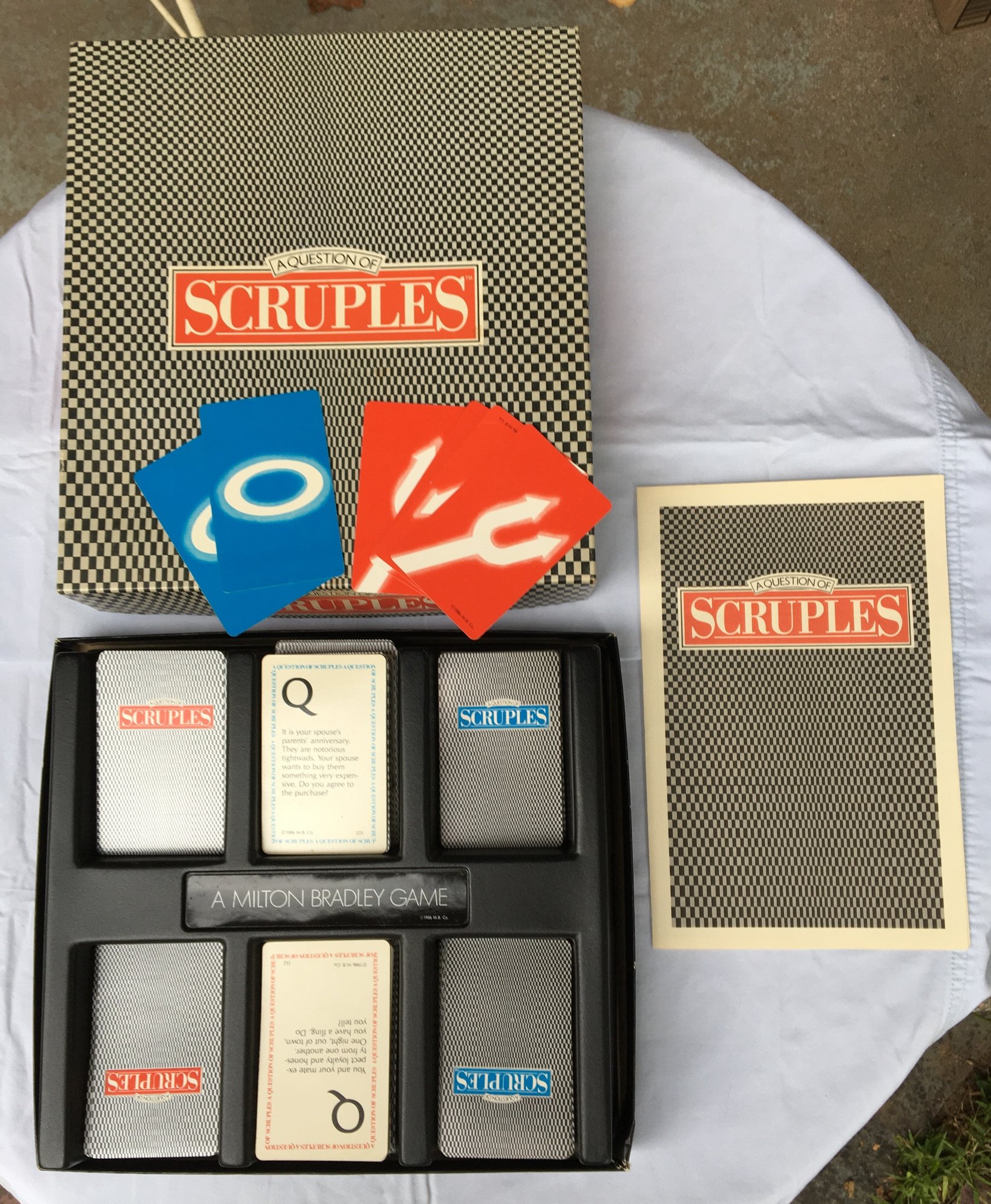 Vintage Question of Scruples Adult Conversational Milton Bradley Game. - Item was Estate found, still in box barely, or never used. - Would make great Christmas gift! - See photos for overall condition.
