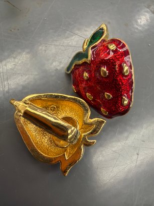 Vintage Red Enamel Strawberry Clip-on Earrings
