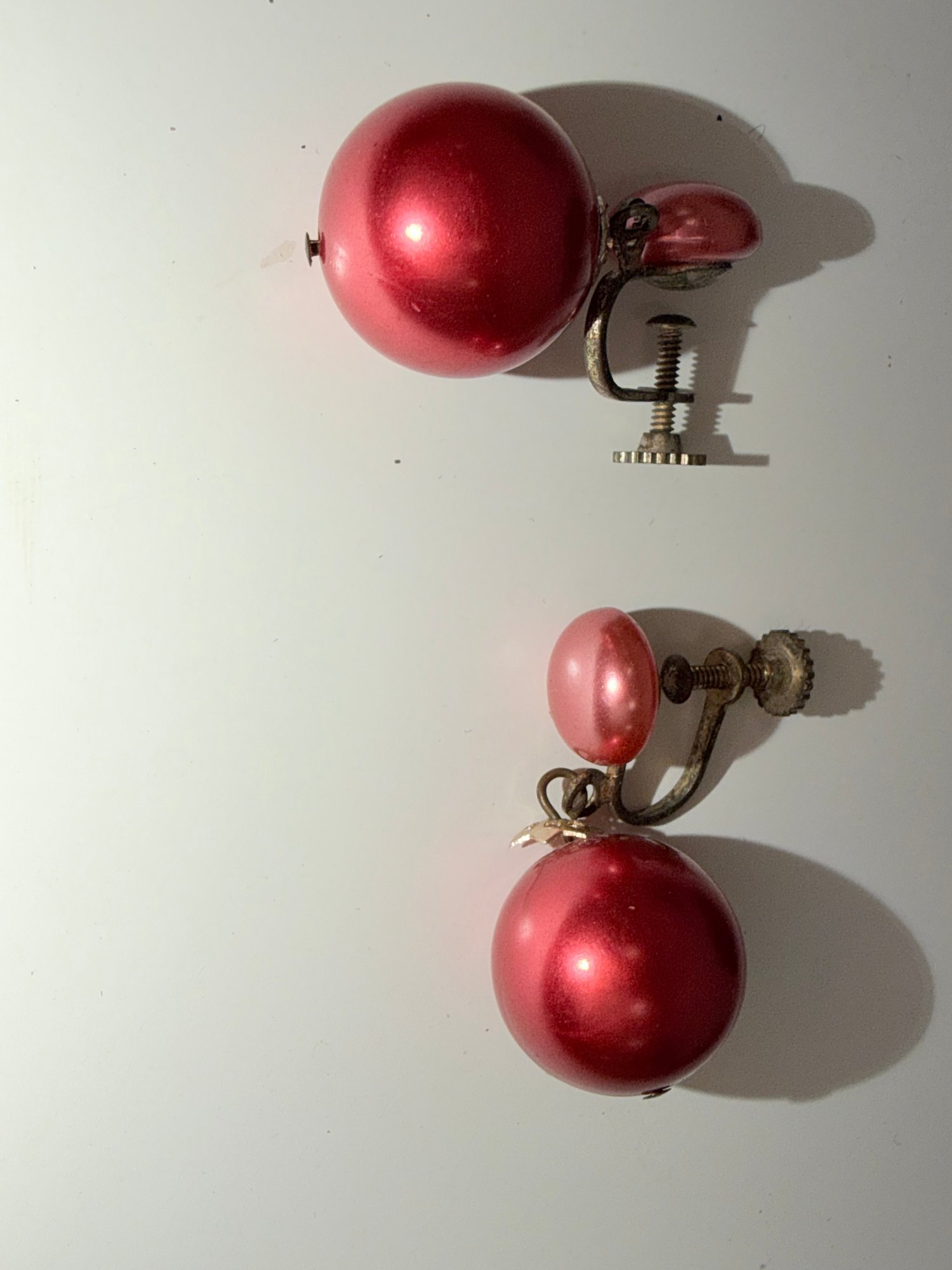 Vintage Red Swirl Bakelite Ball Screw Back Earrings