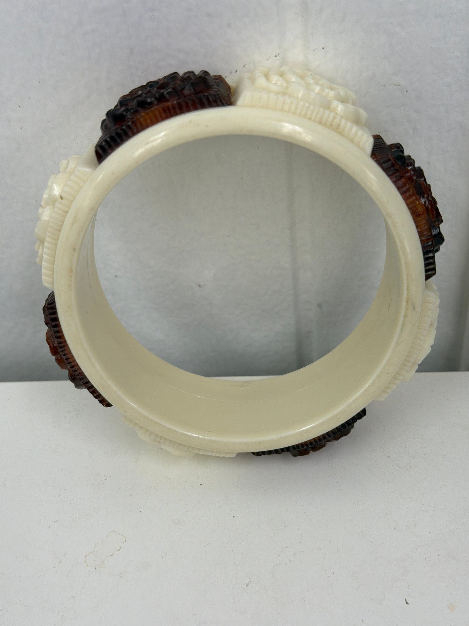 Vintage Sarah Coventry Lucite "coffee And Cream"molded Panel Bangle Bracelet