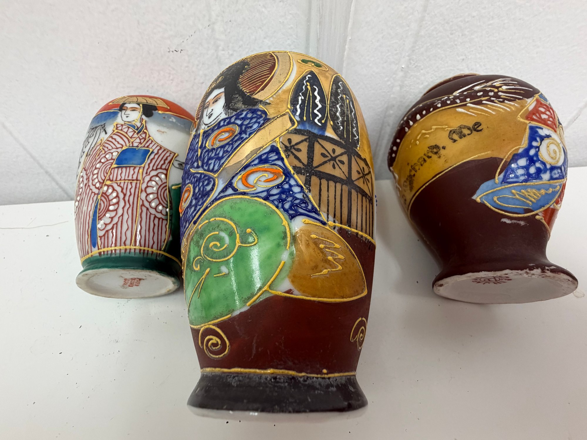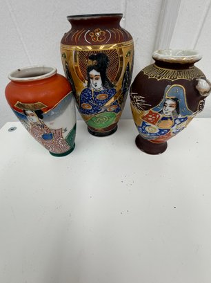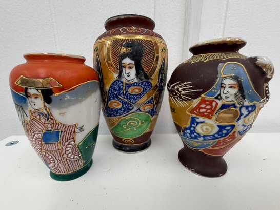 Vintage Satsuma Style Moriage Hand-painted Vases From Japan