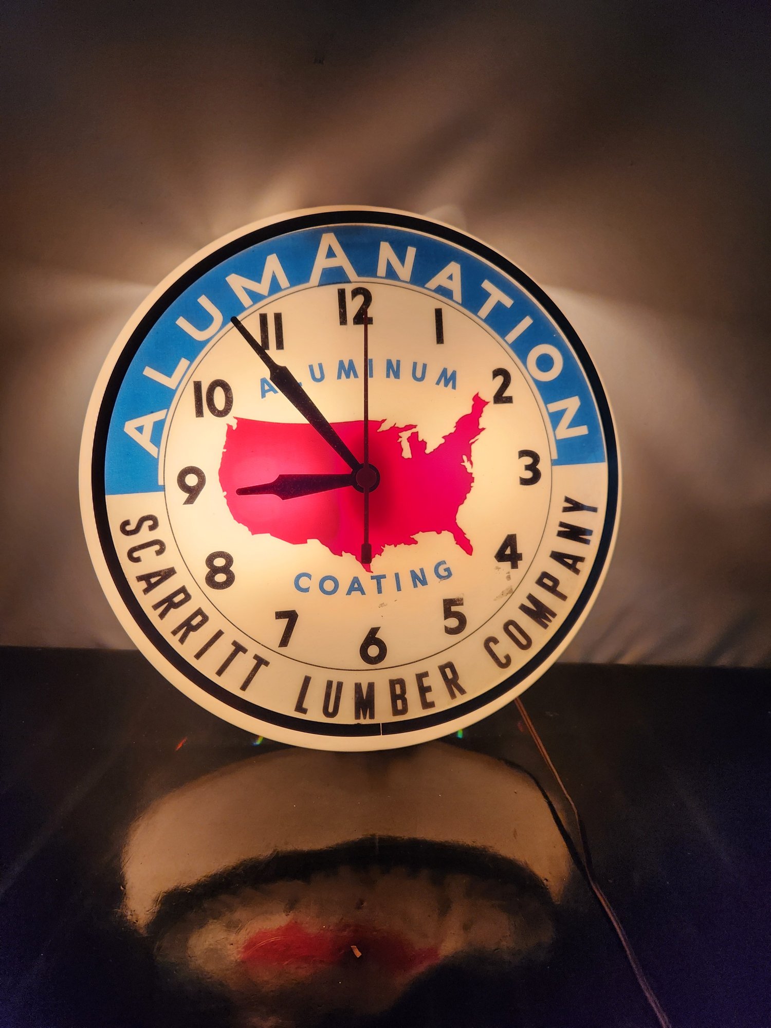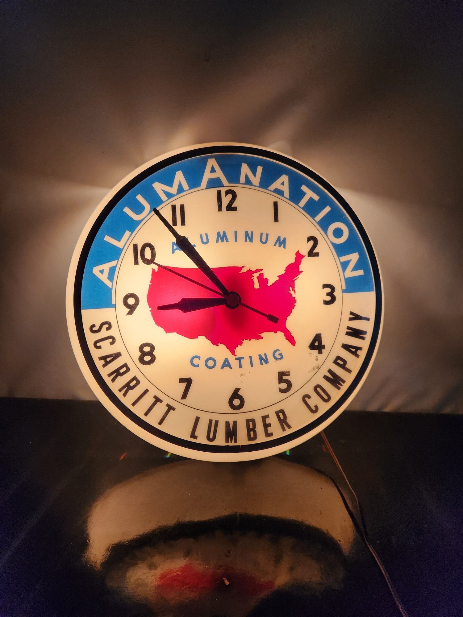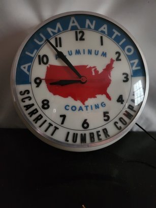 Vintage Scarritt Lumber Company lighted advertising Clock in working condition