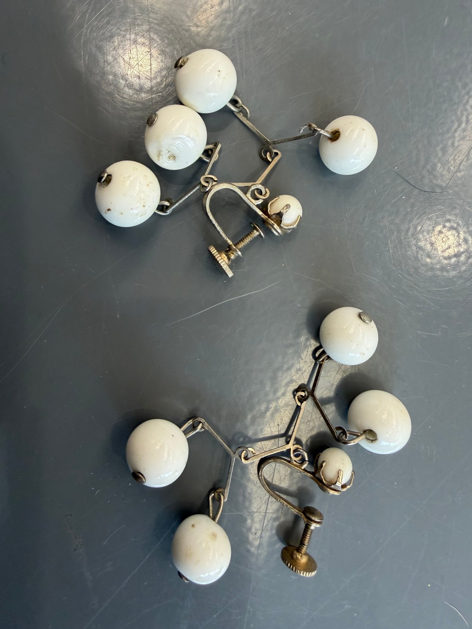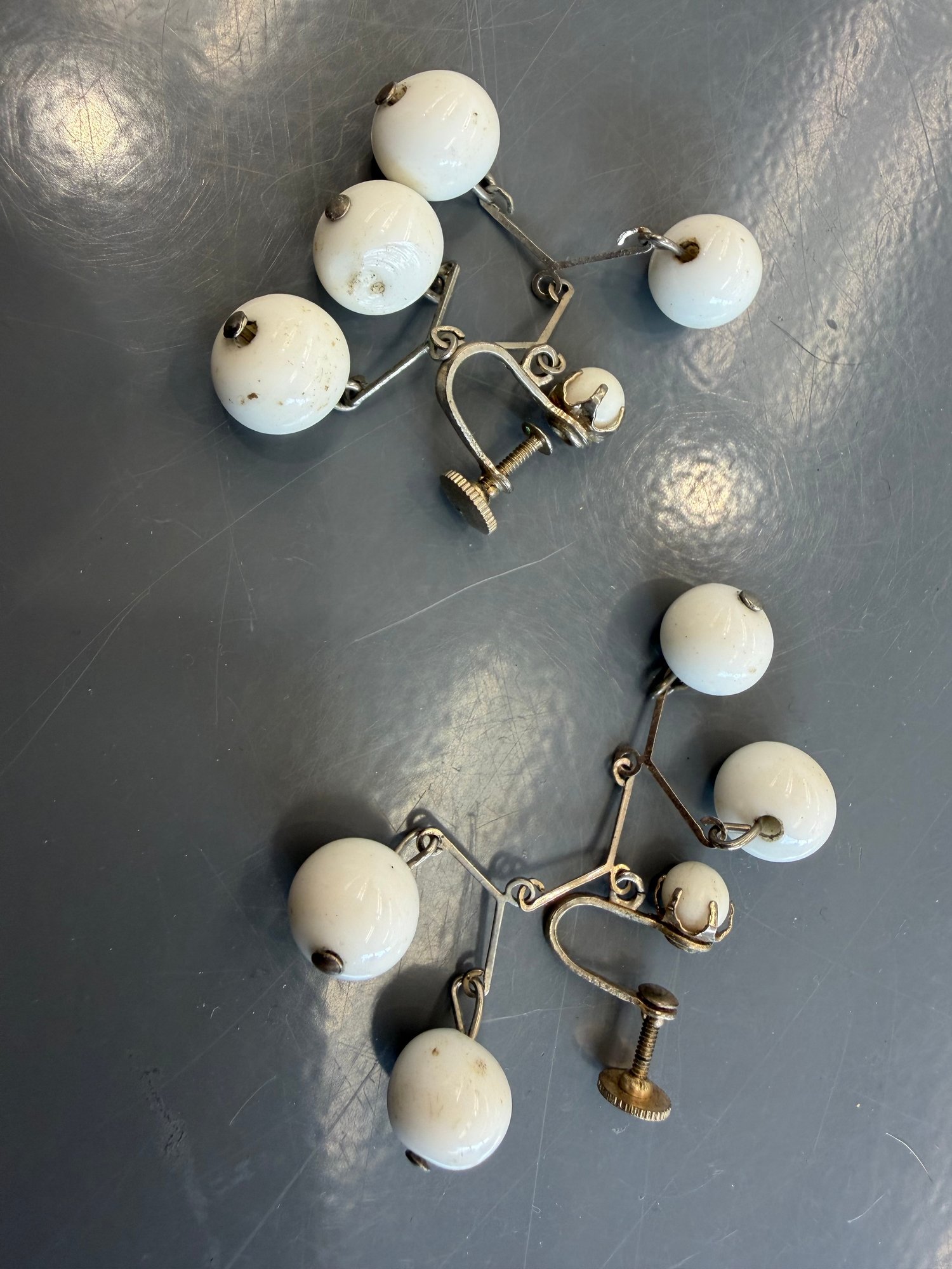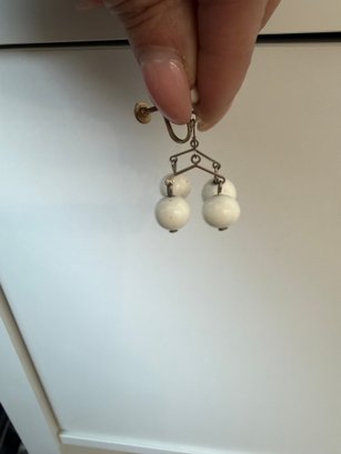 Vintage Screw Back Earrings Featuring A Geometric Design With White Sphercial Beads