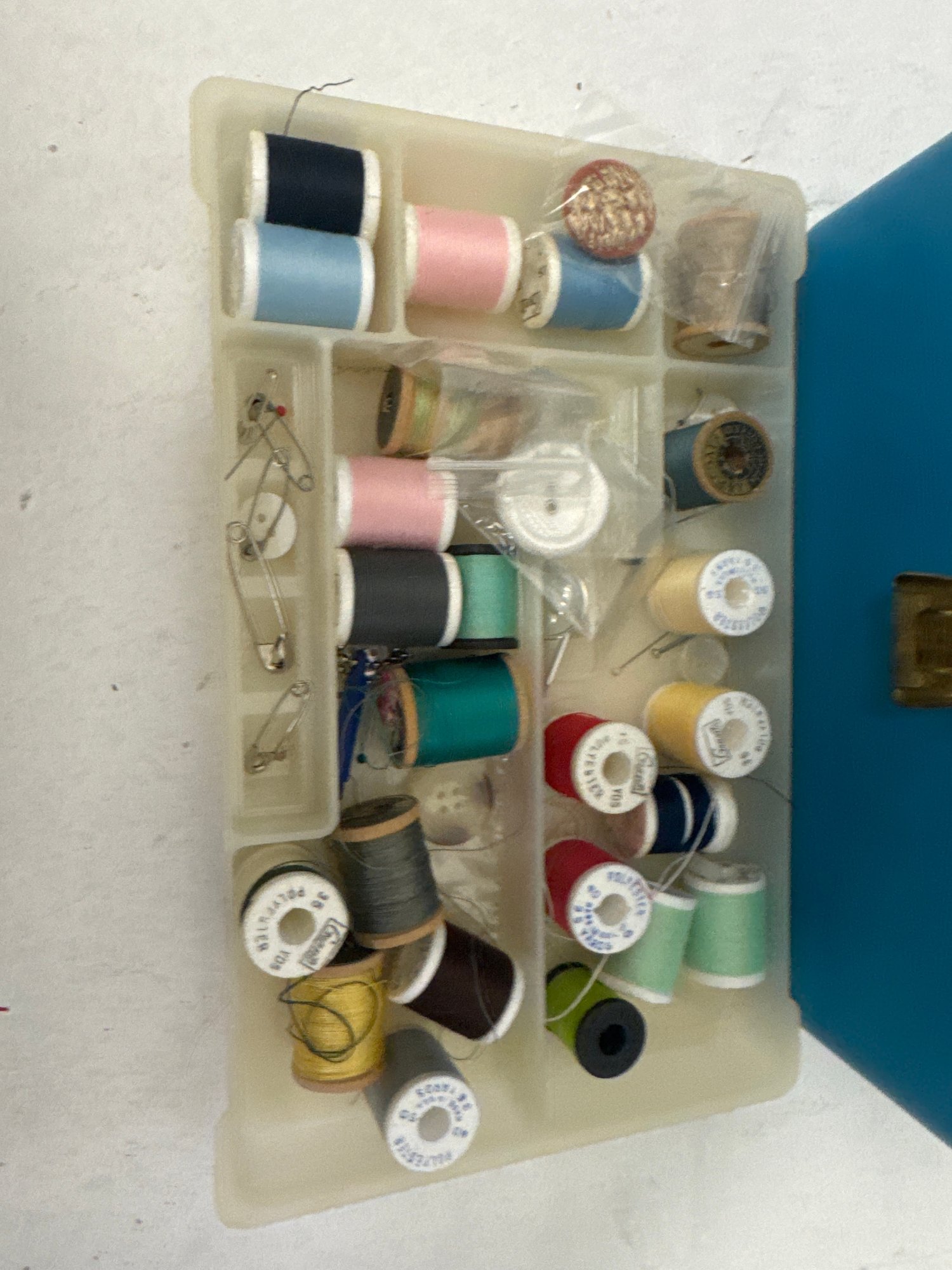 Vintage Sewing Box And Set Likely Dates From The 1970s And Includes A "Wil-hold" Blue Plastic Storage Case Fil