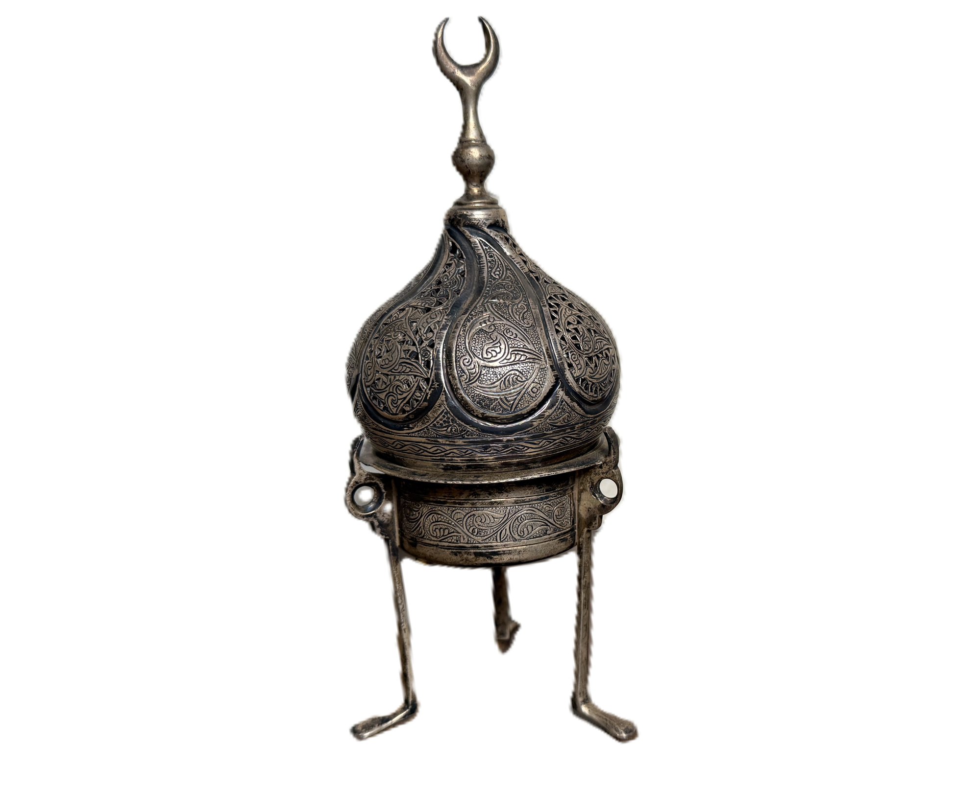 Vintage silver incense burner by Saad Silversmiths of Egypt, bearing three hallmarks, believed to be silverplate but not sure.