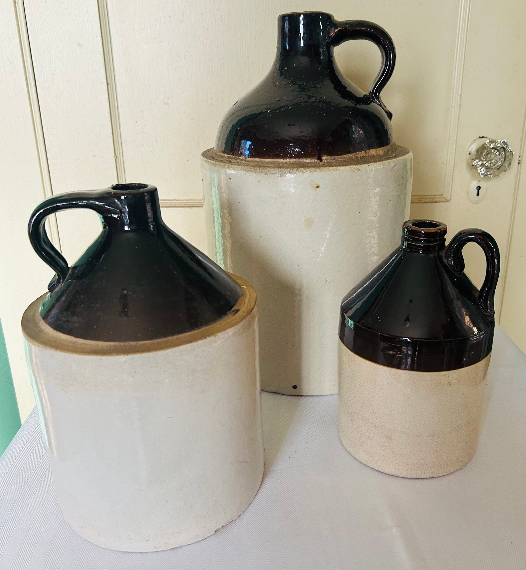 Vintage Stoneware Drip Glaze Jugs With Handles