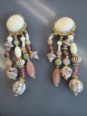 They have a dangle or fringle style and are crafted from stone and shell rock