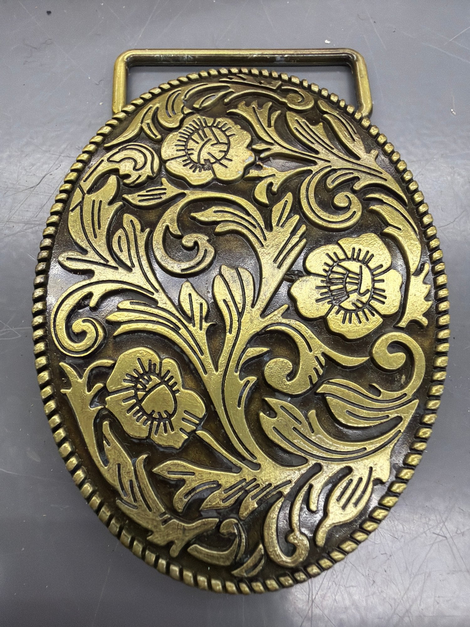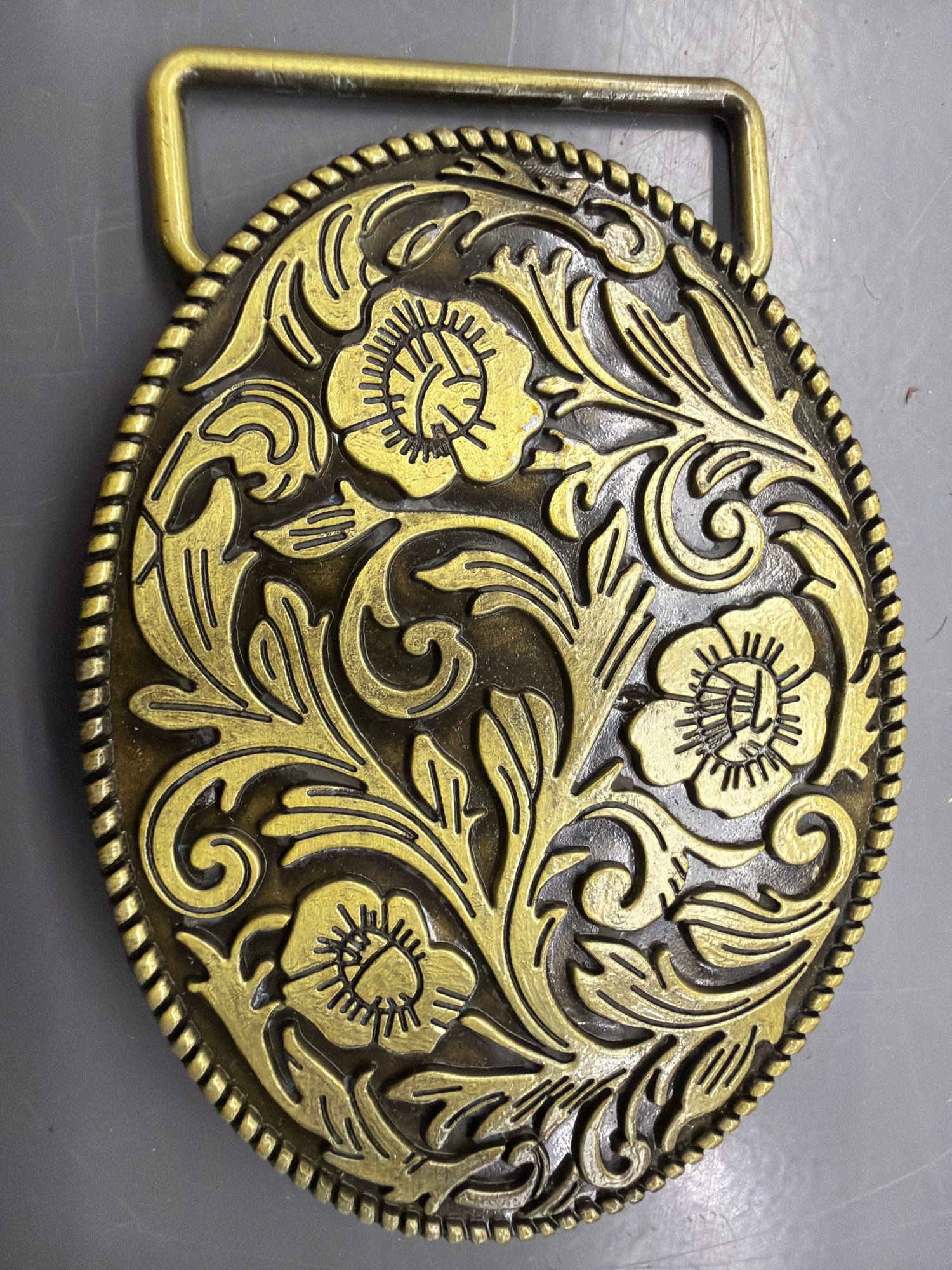 Vintage Style Gold-toned Western Belt Buckle Featuring A Raised Floral And Scrollwork Design