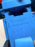 (2) Plastic Semi Trucks + Car Carrier Trailer, Blue cab trucks, Large car carrier trailer (off-white/orange tone)