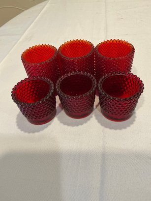 3 short and 3 long red votive candle holders