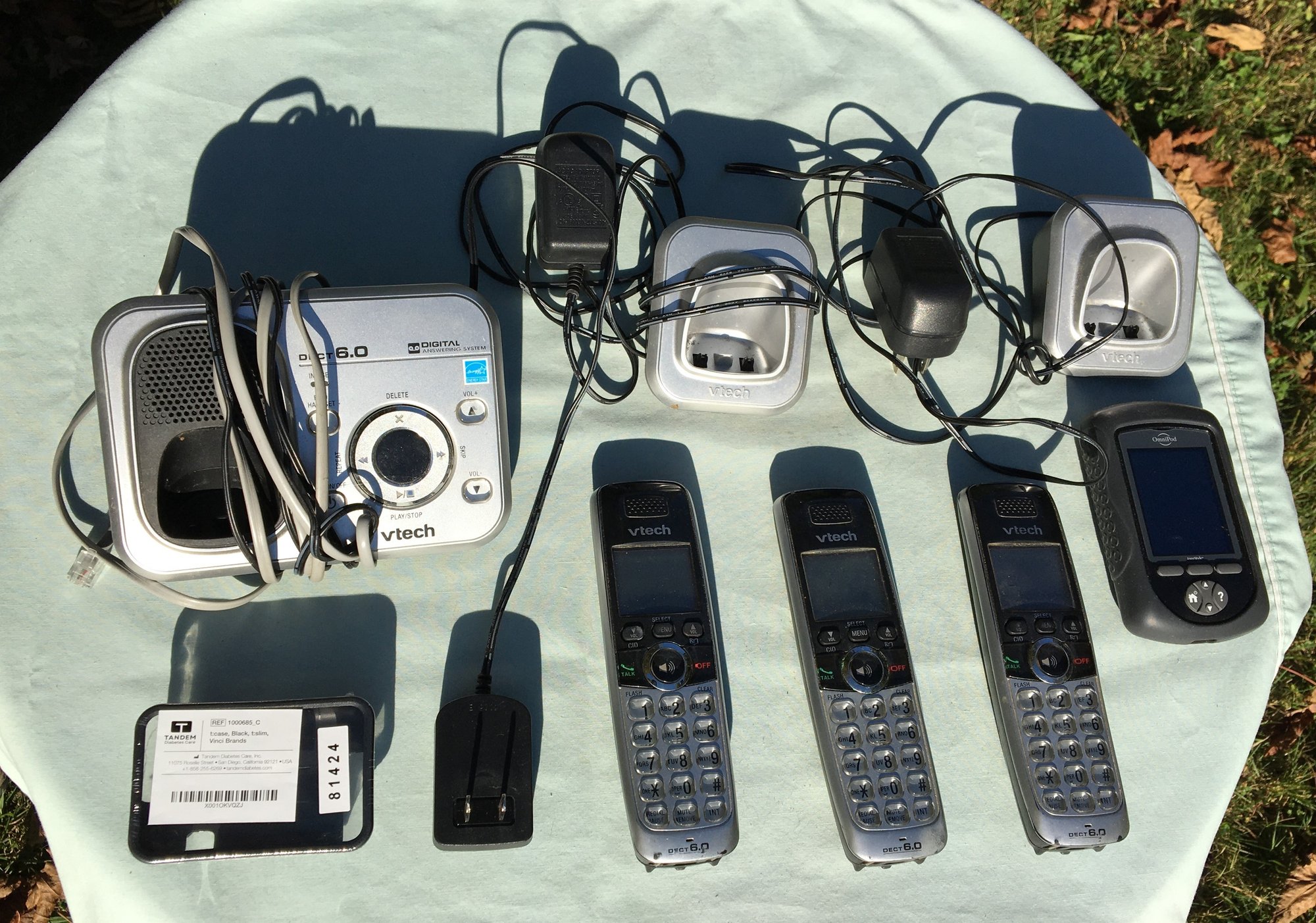 Vtech 3 Hand Set cordless Phone System Electronics Lot. - All units powered up when plugged in. - See Photos for overall condition.