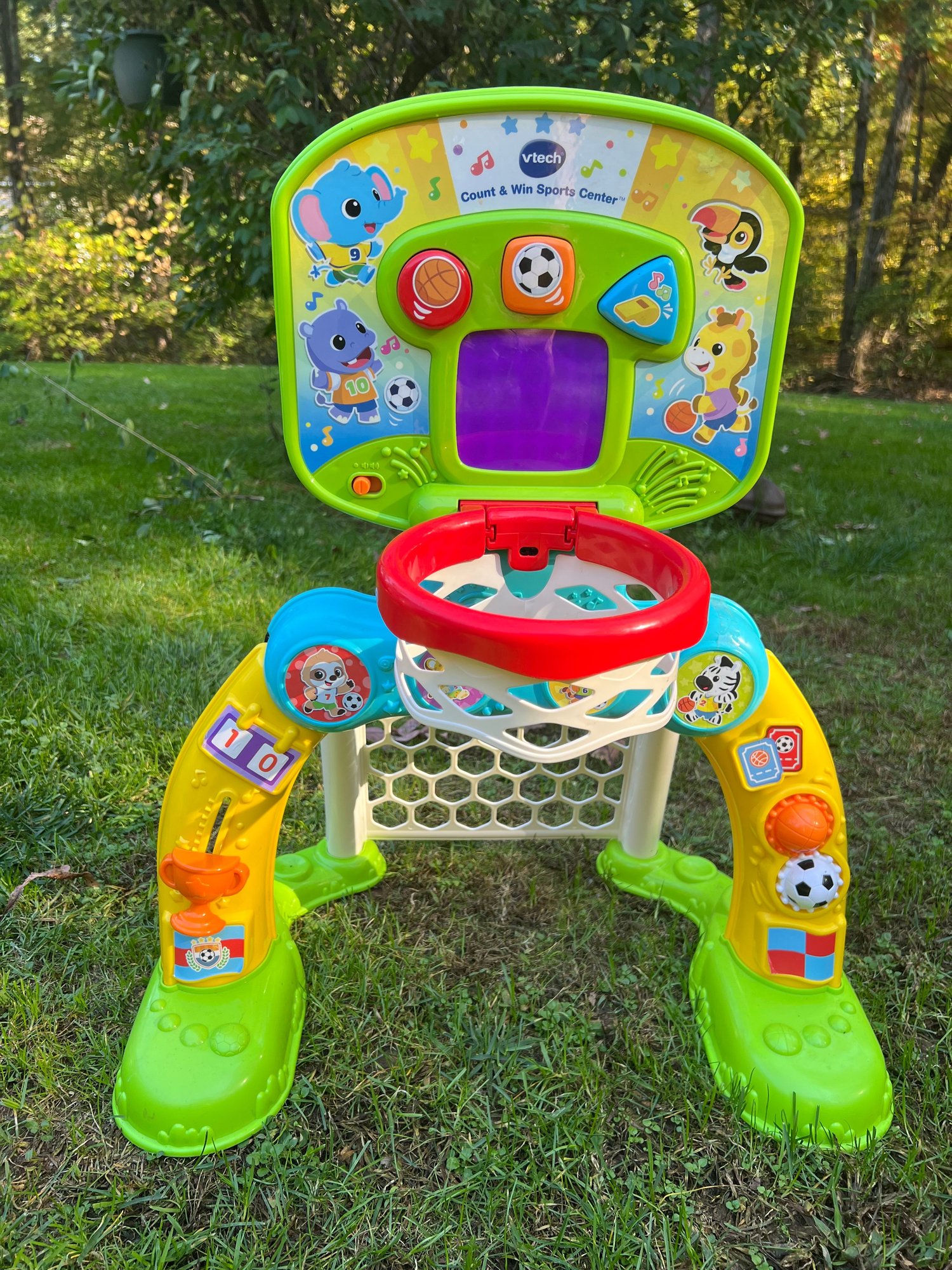 Basketball and soccer toy for baby/toddlers works with sound and multi functional. Balls not included.
