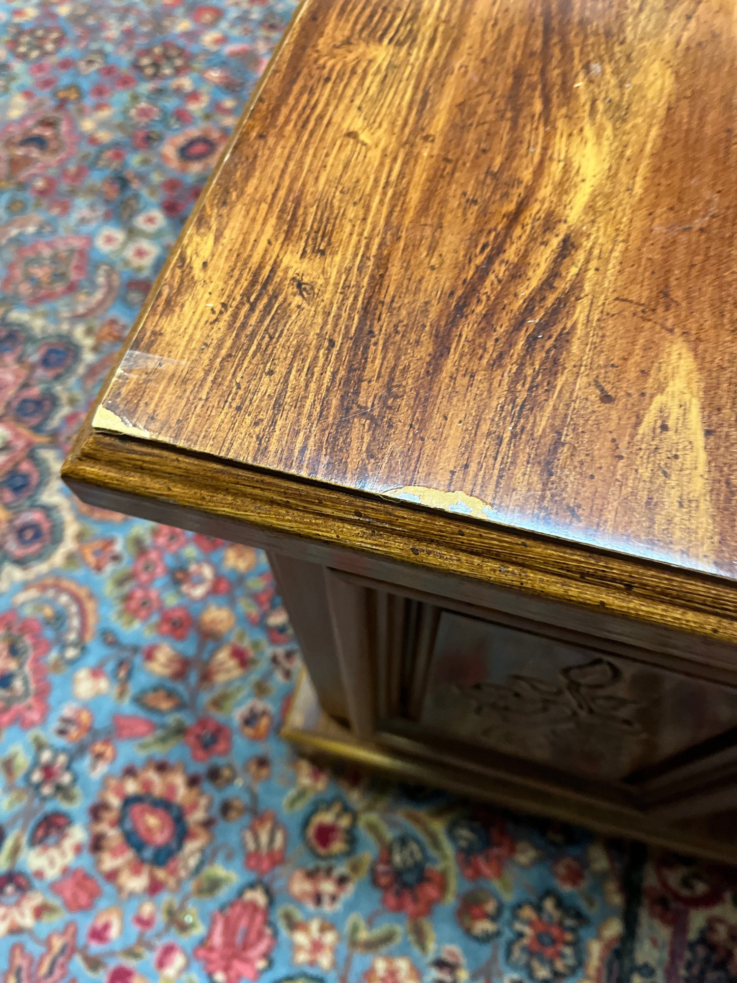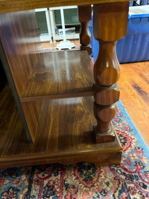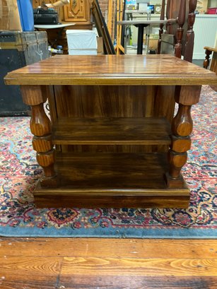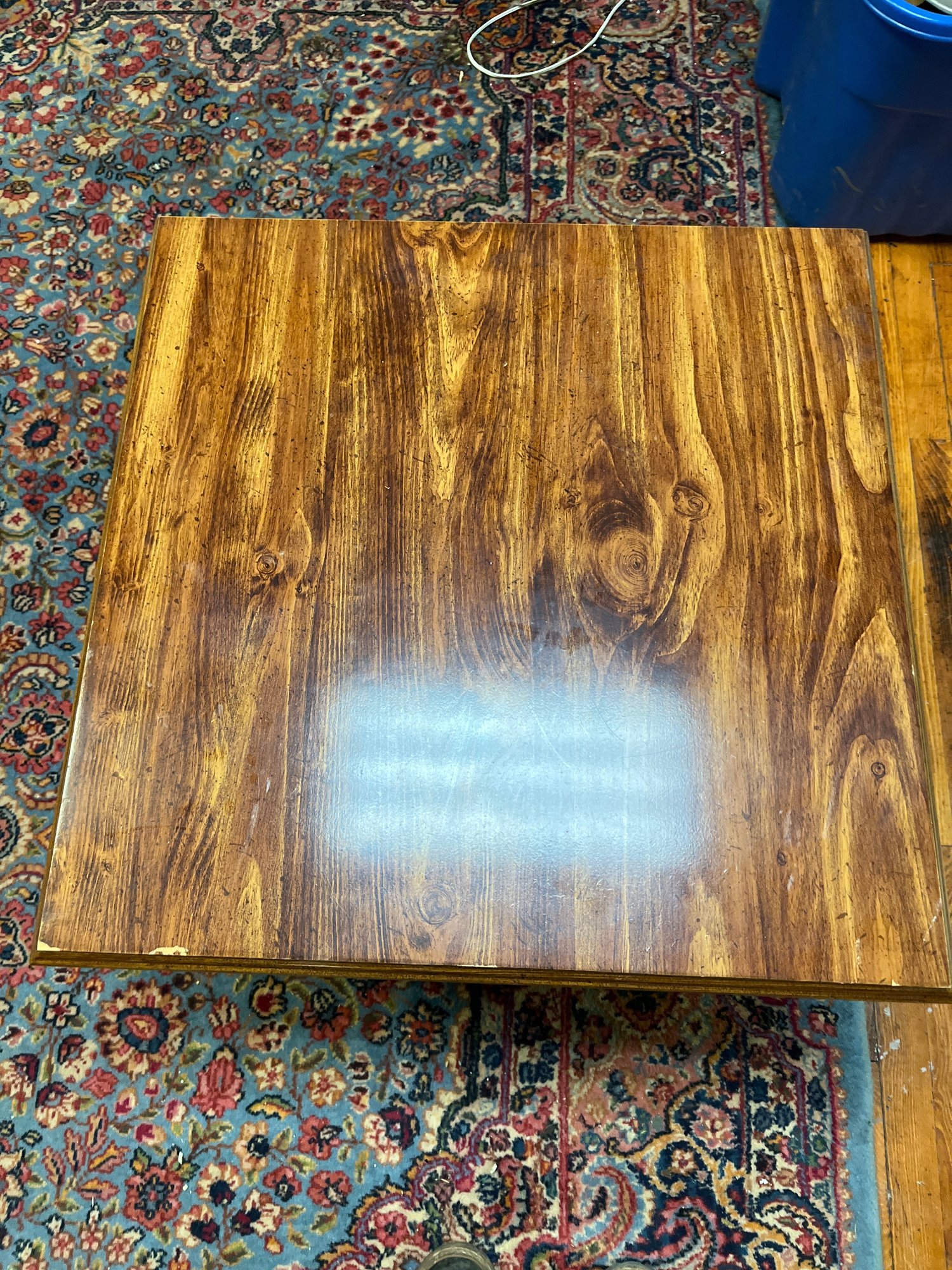See pictures for details. Measurements are 24 x 24 x 21” tall some scratches still nice piece.