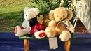 Wooden Bear Bench And 2 Collectable Bear
