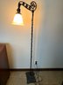 wrought iron bridge floor lamp, original condition, black iron, in very nice condition