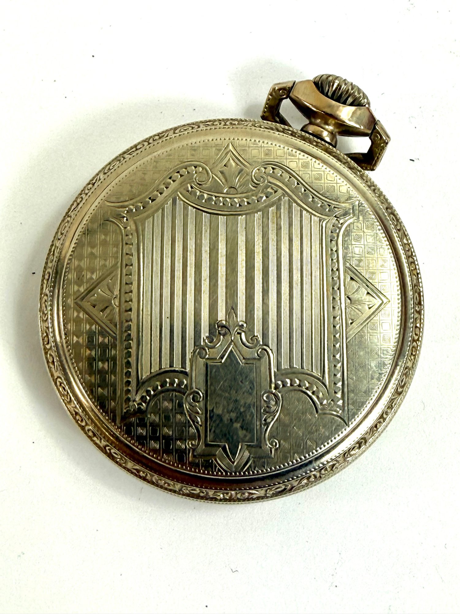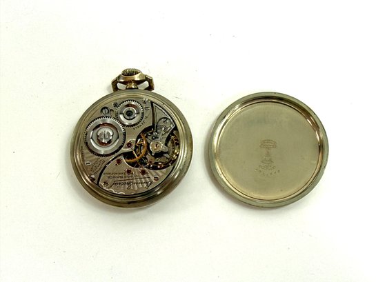 Stamped 14 karat gold filled this 21 jewel pocket watch.