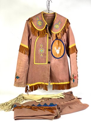 Nice Jacket, pants and bag from deer hide.