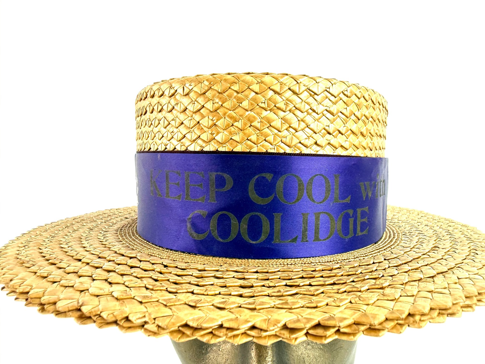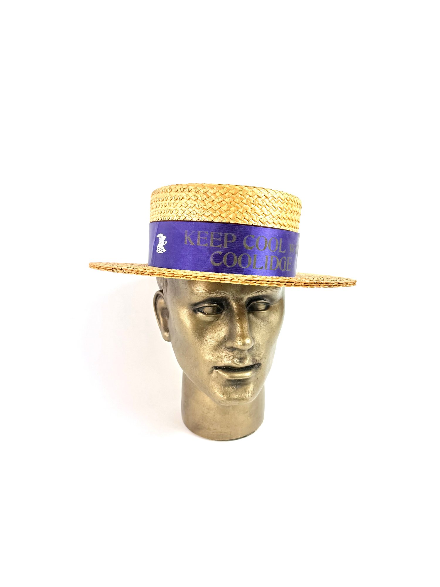 Made by Stetson this hat supports Coolidge for president with a ( keep cool with Coolidge) purple campaign ribbon. It is an excellent condition.
