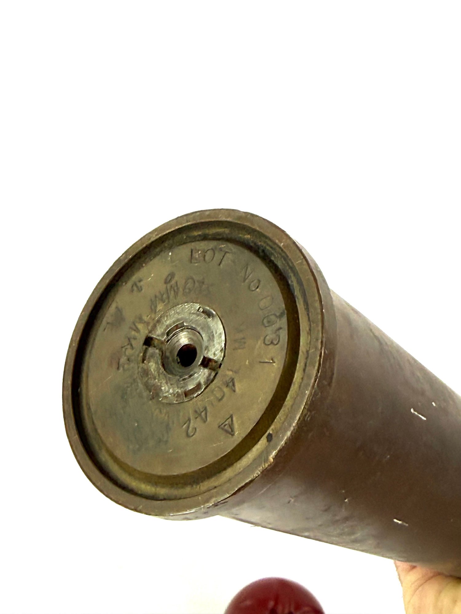 Still has green and white paint on the tip. It has been drilled out on four sides.