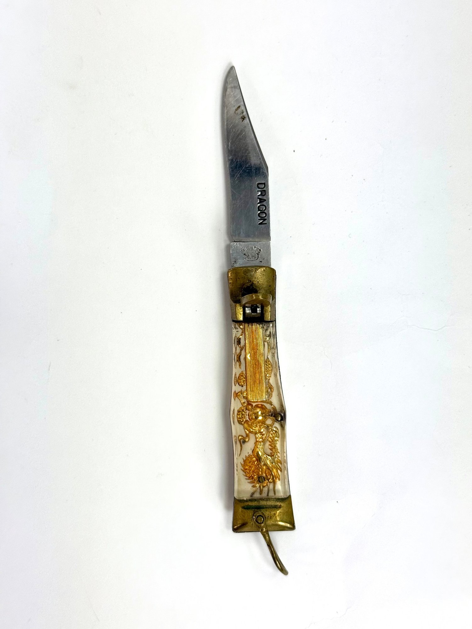 Made of stainless steel with dragon embossedon the blade In good condition and measures 6” across.