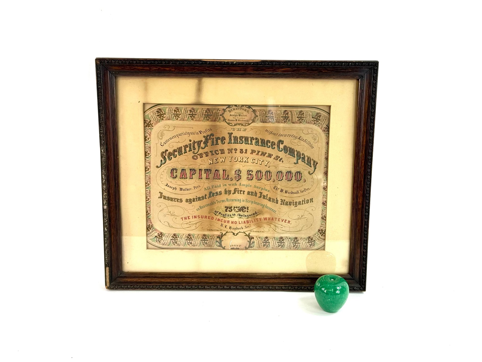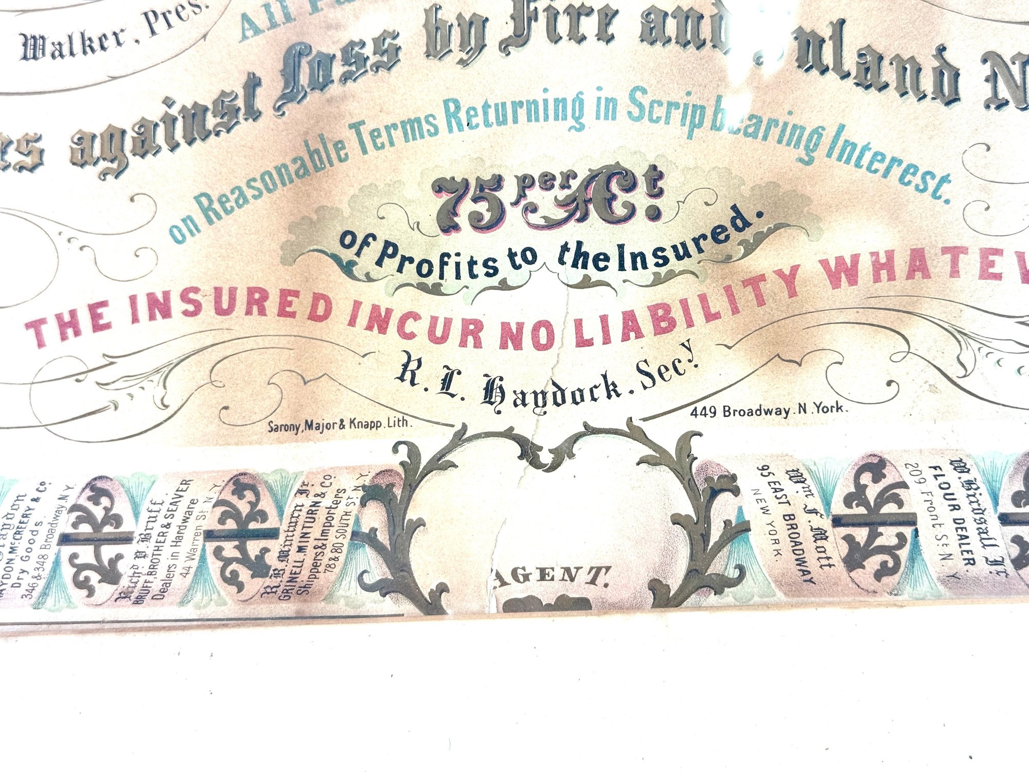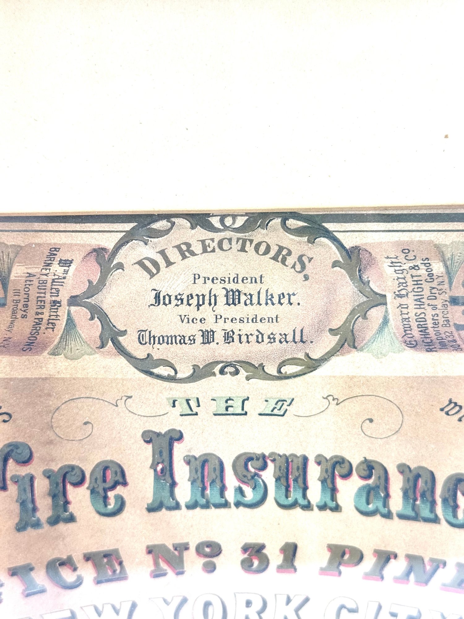 New York City insurance company advertisement office 31 Pine Street. President Joseph Walker. Capital 500,000!!