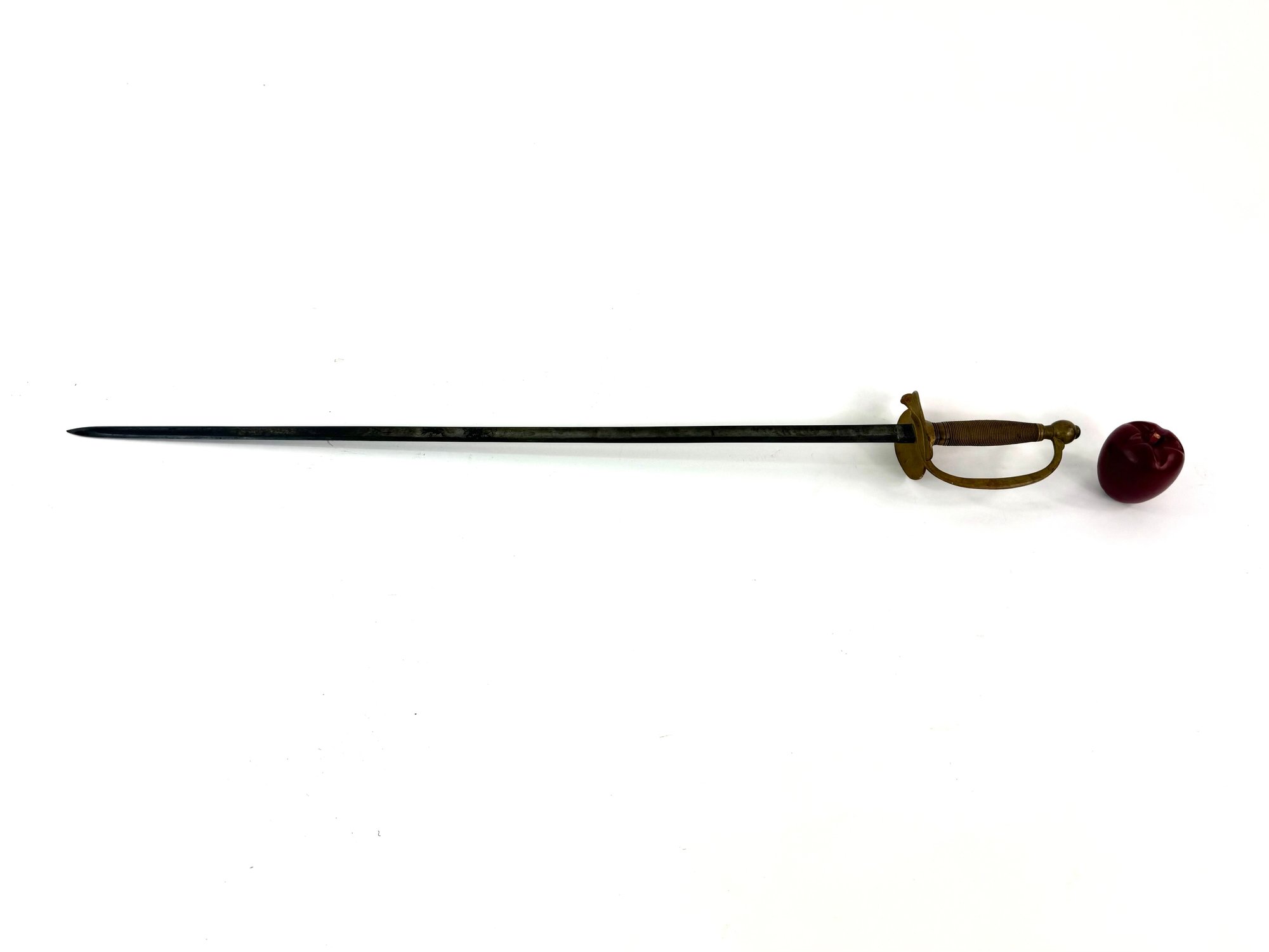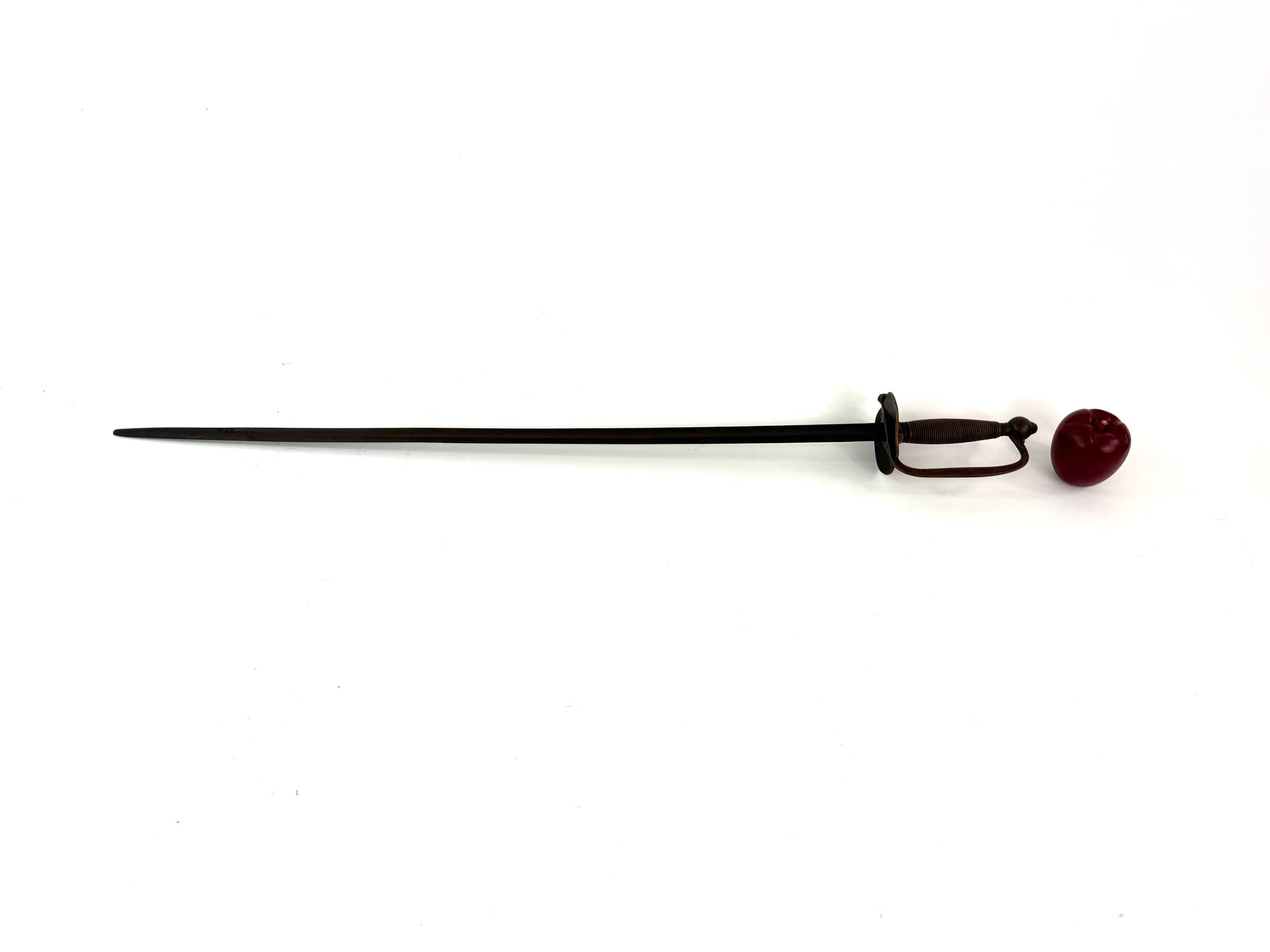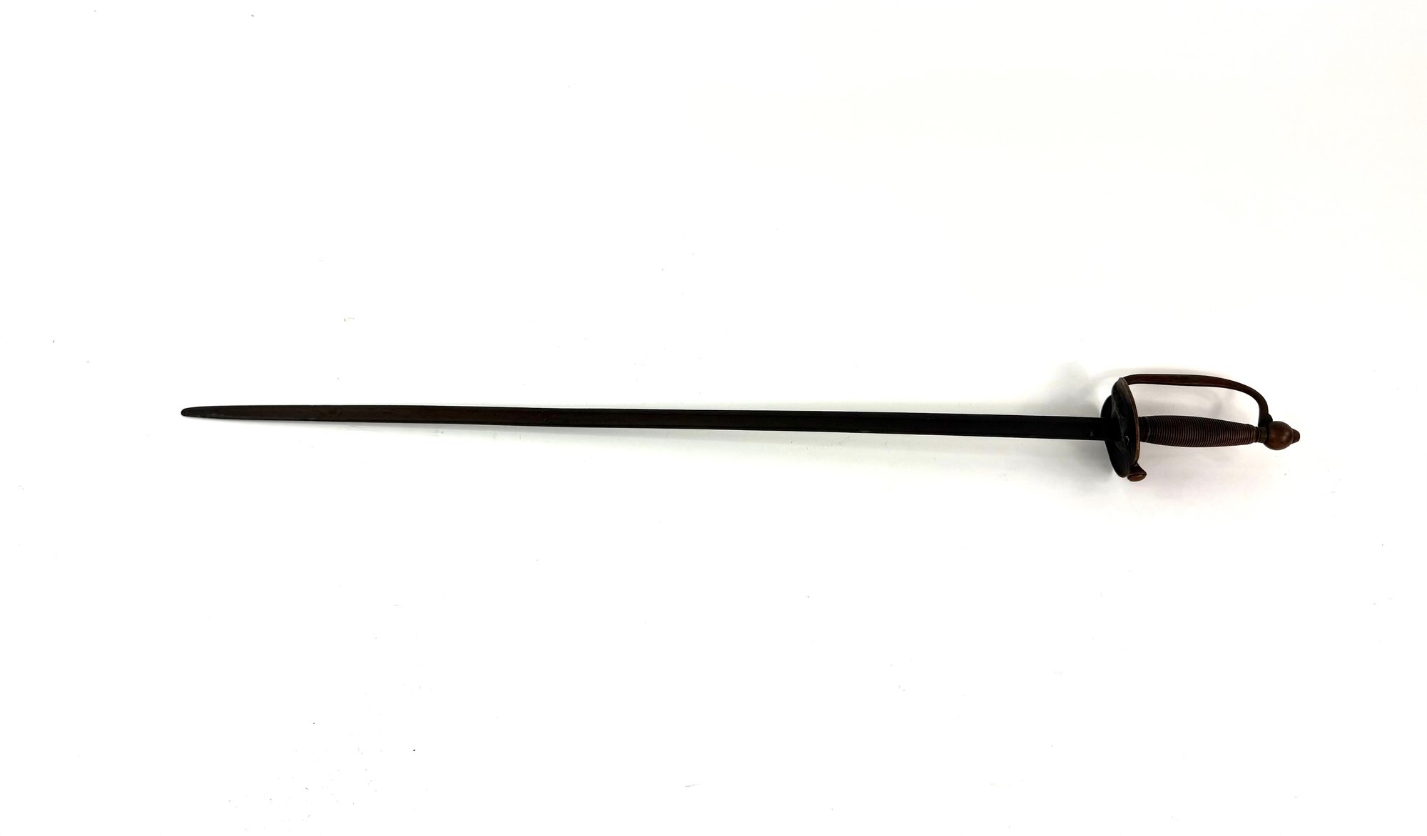 Use mainly by musicians this sword has a slightly tarnished copper finish and a dark blade. Please see photos.