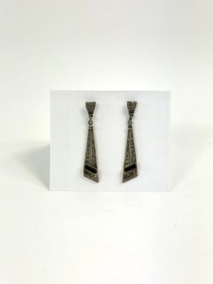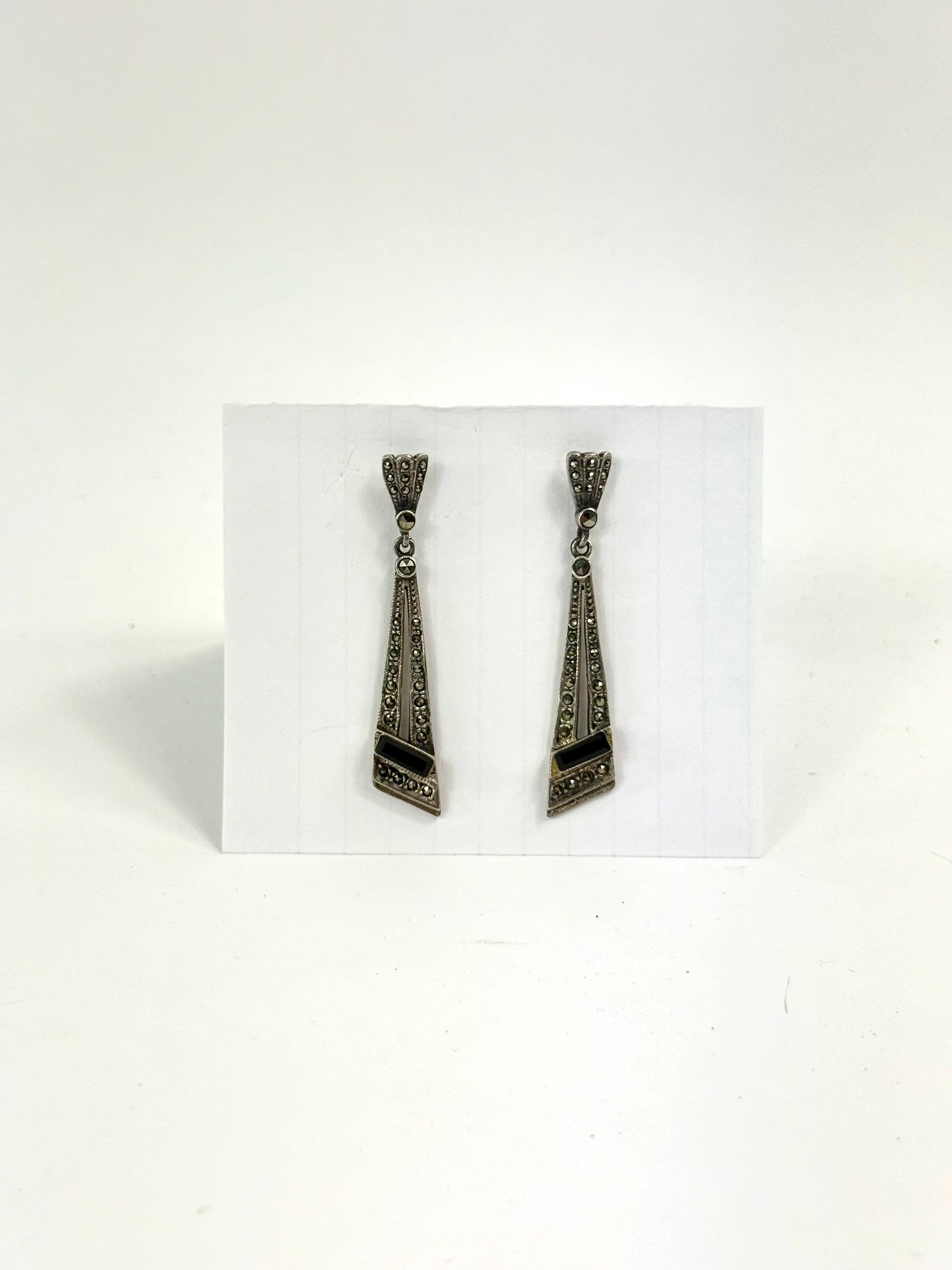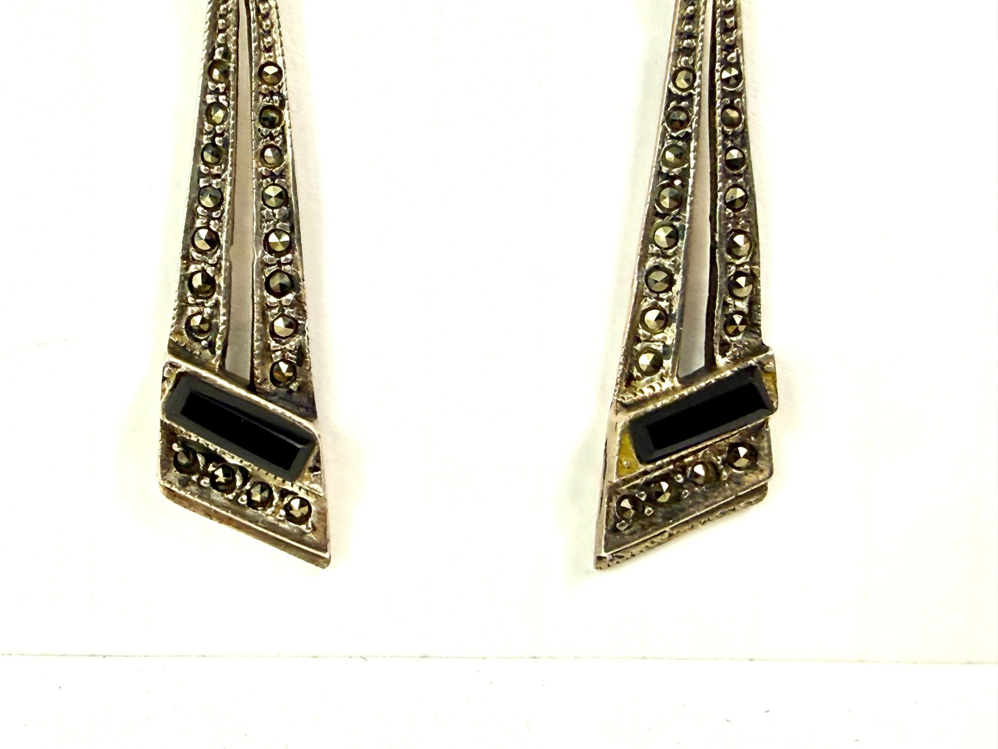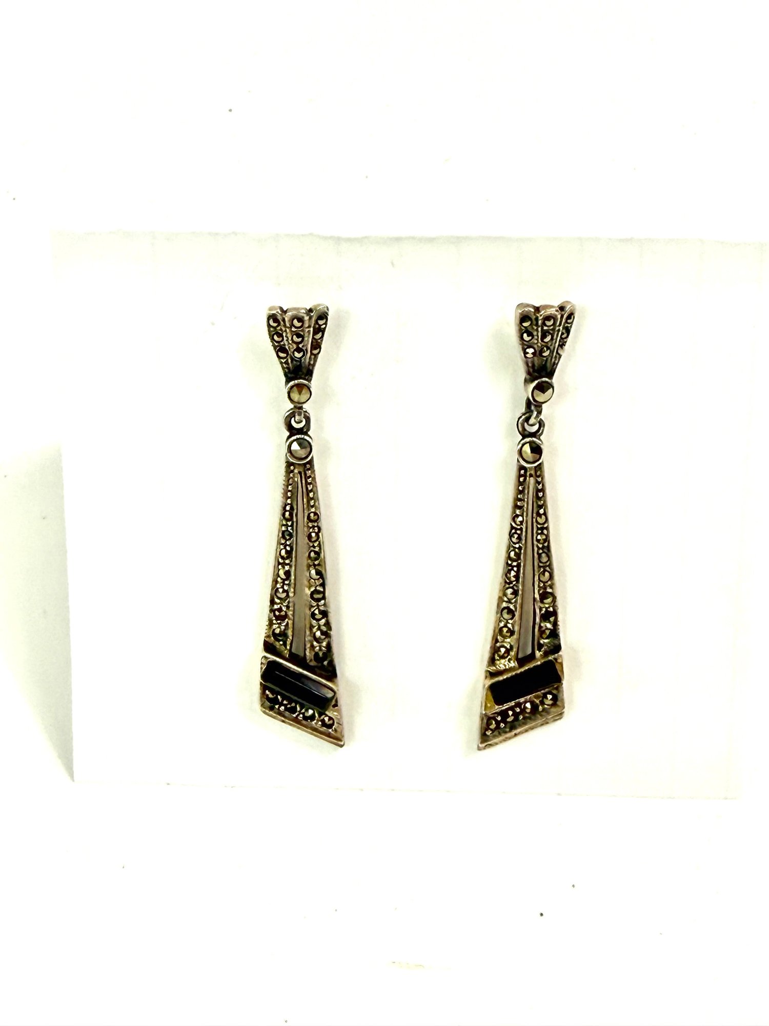 Beautiful sterling earrings with black onyx-stone and marcasite. Stamped 925