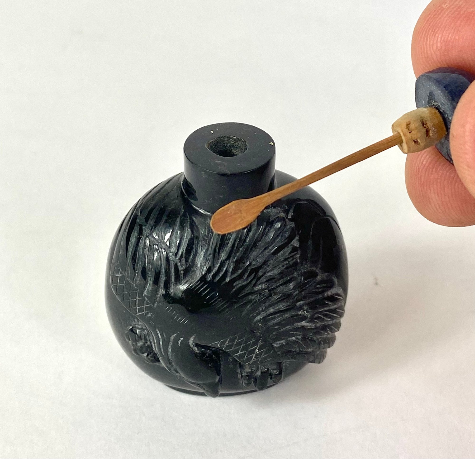 Made of obsidian and is embossed with eagle figure.