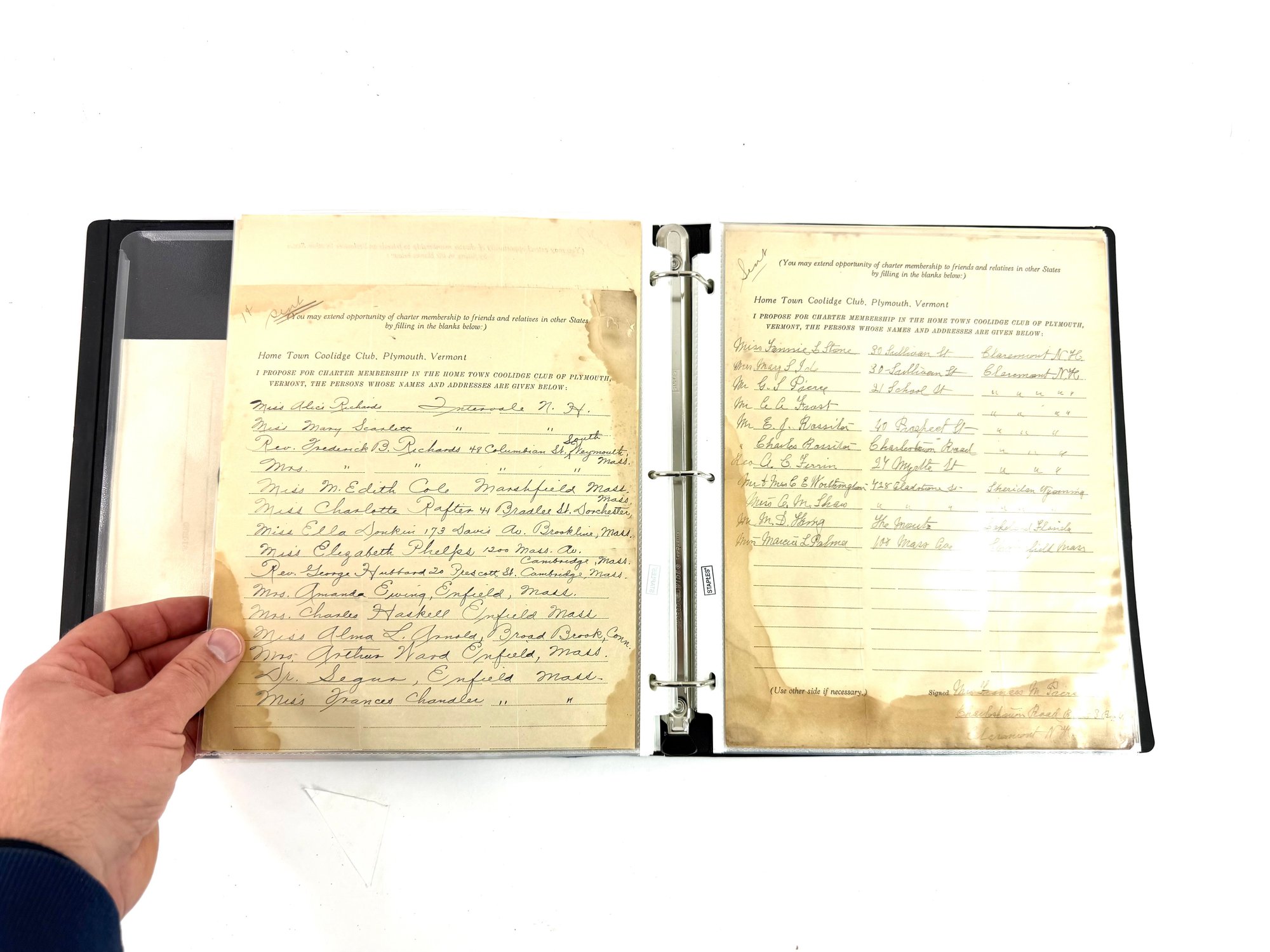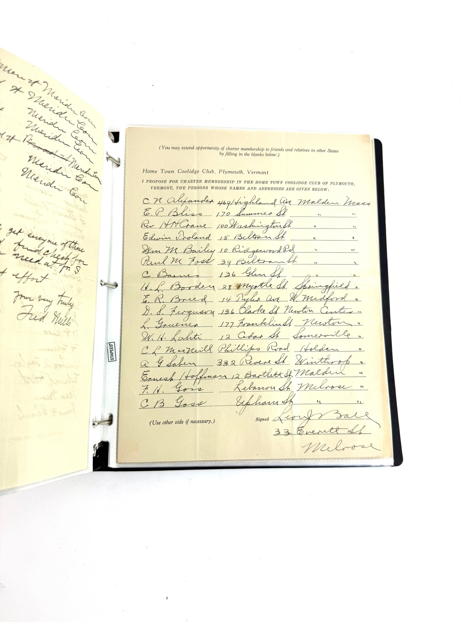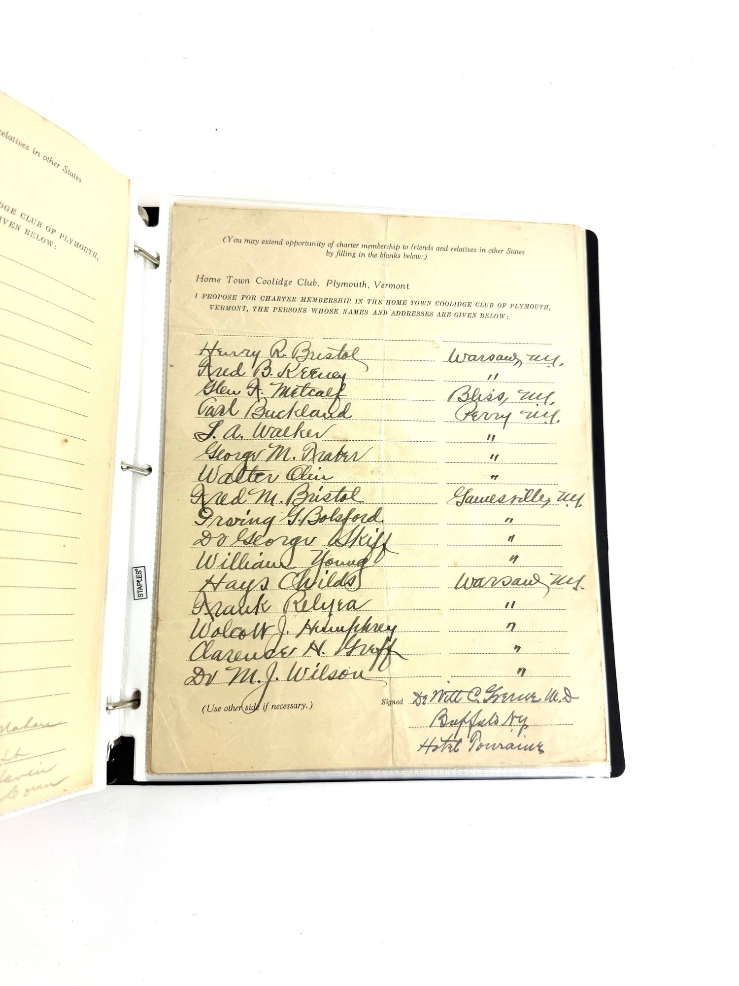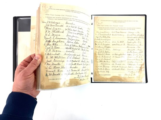 This group of papers have the personal signatures of individuals from surrounding towns in Vermont gathering members and their membership signatures. For Coolidge’s first 1924 campaign.