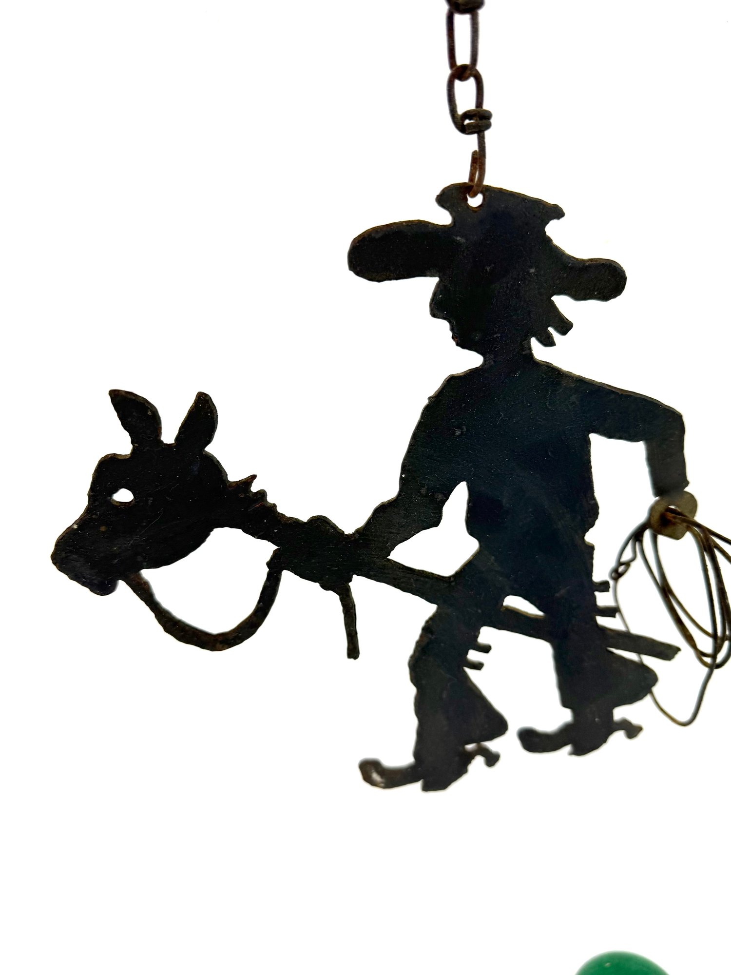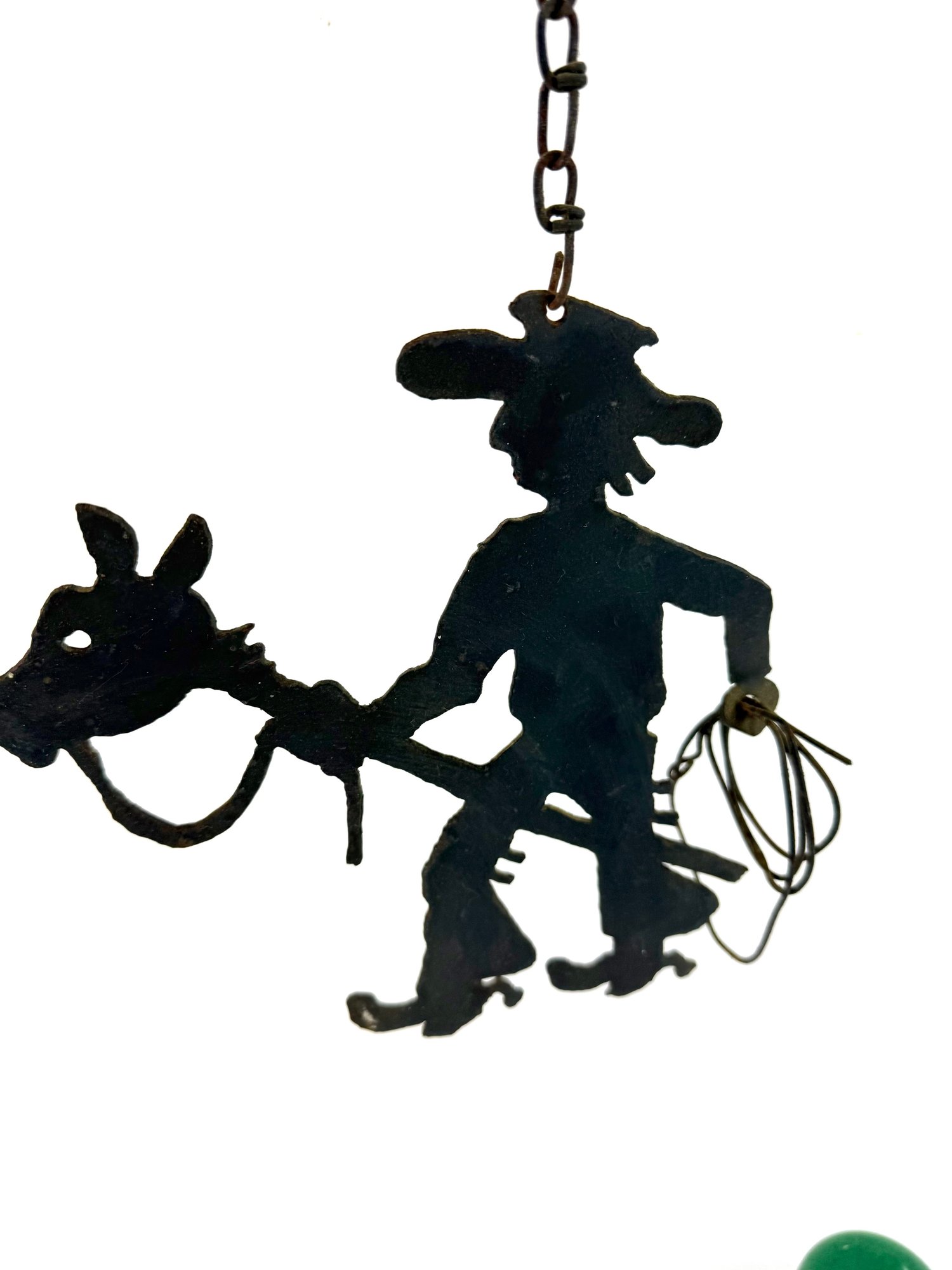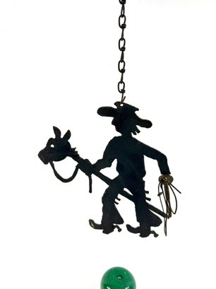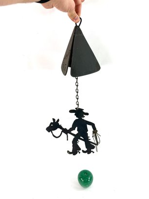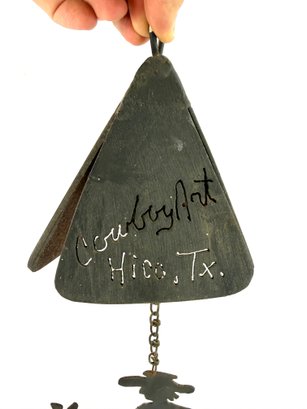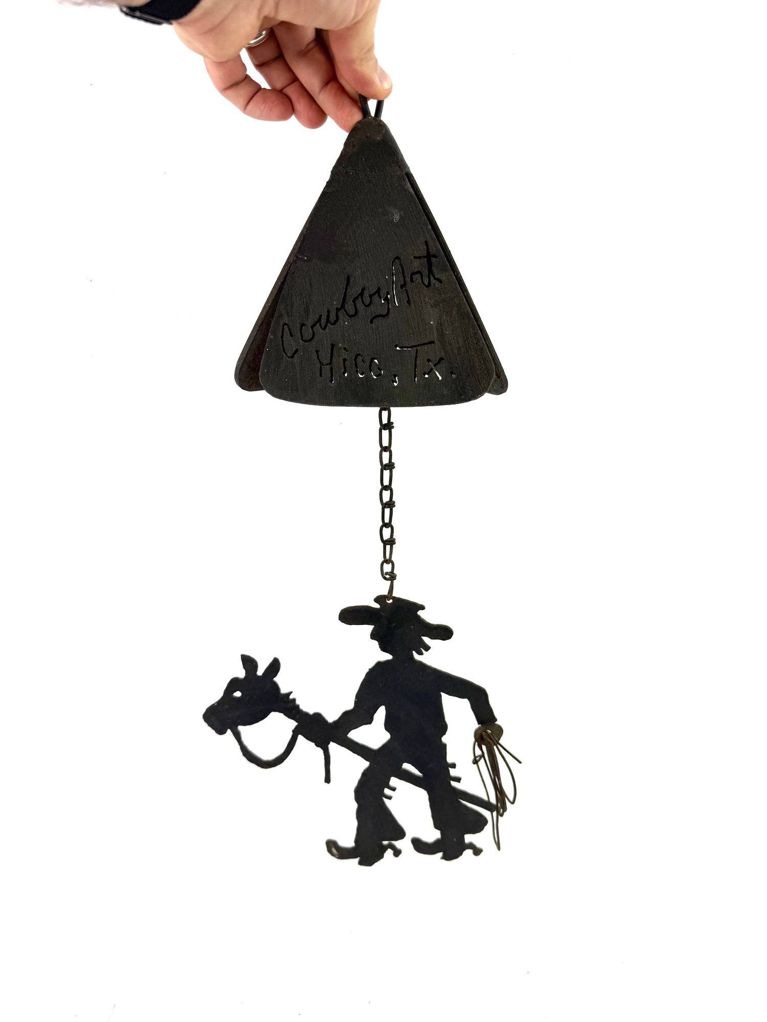 Well-made iron bell with image of cowboy and Lasso, signed country Art HICO, TX