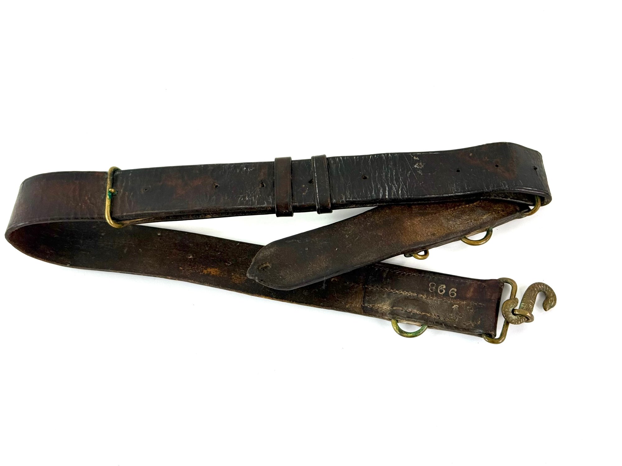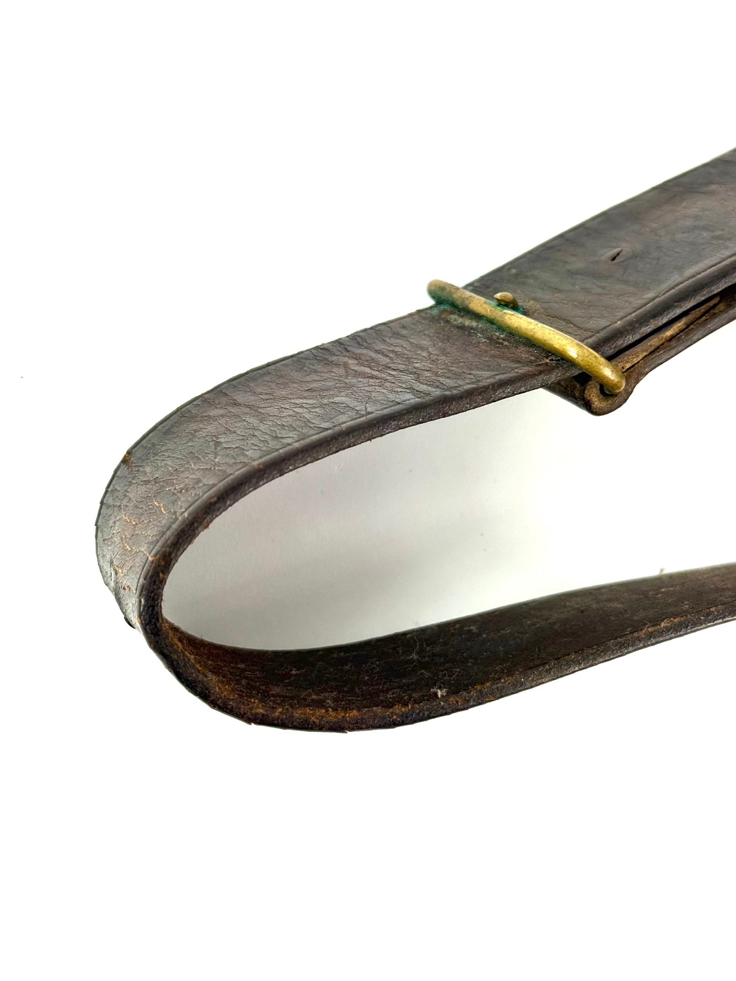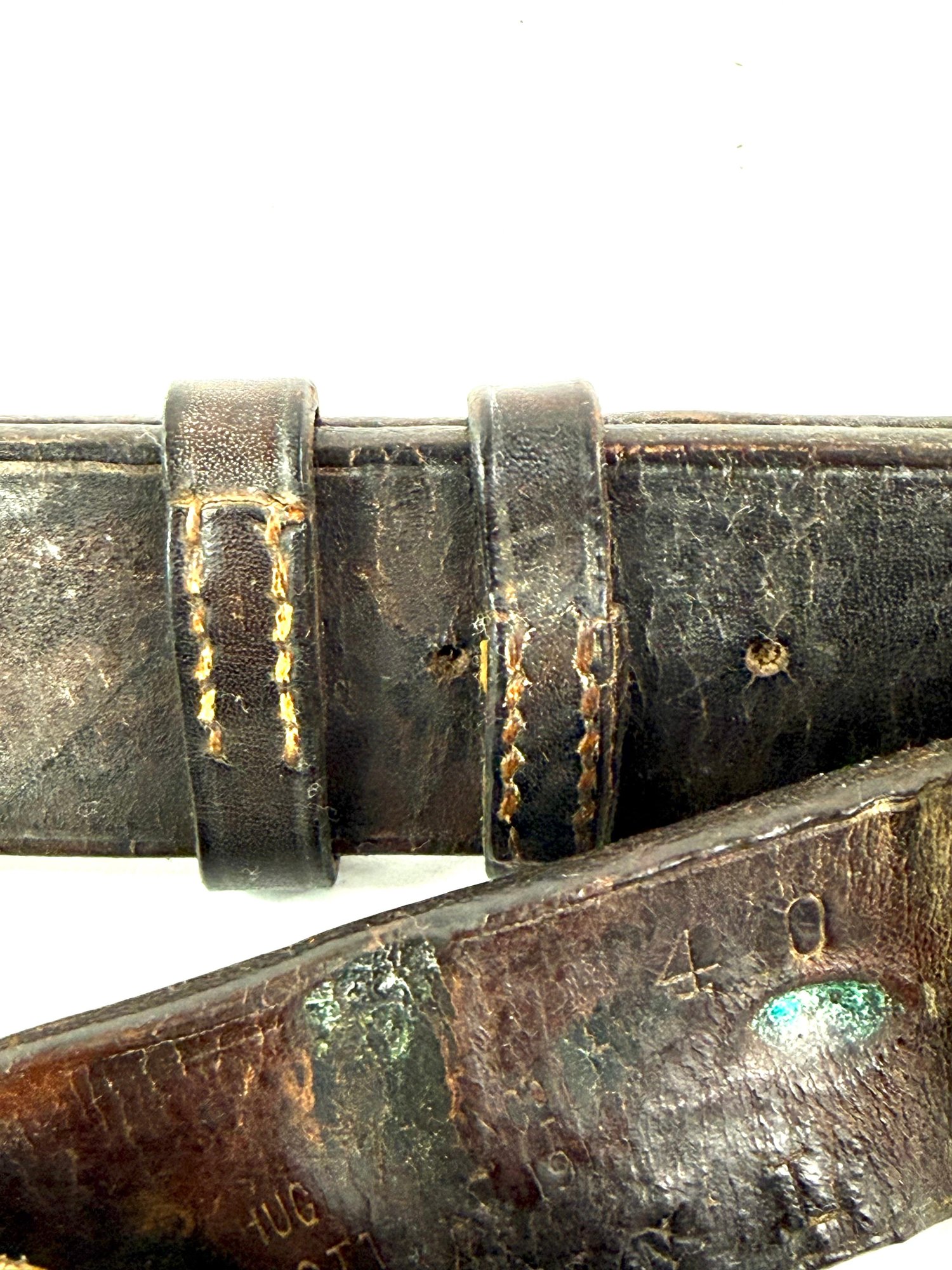 This belt is in good condition with original brass loops and snake buckle single whole configuration with Military 998 Mark. Please see photos.