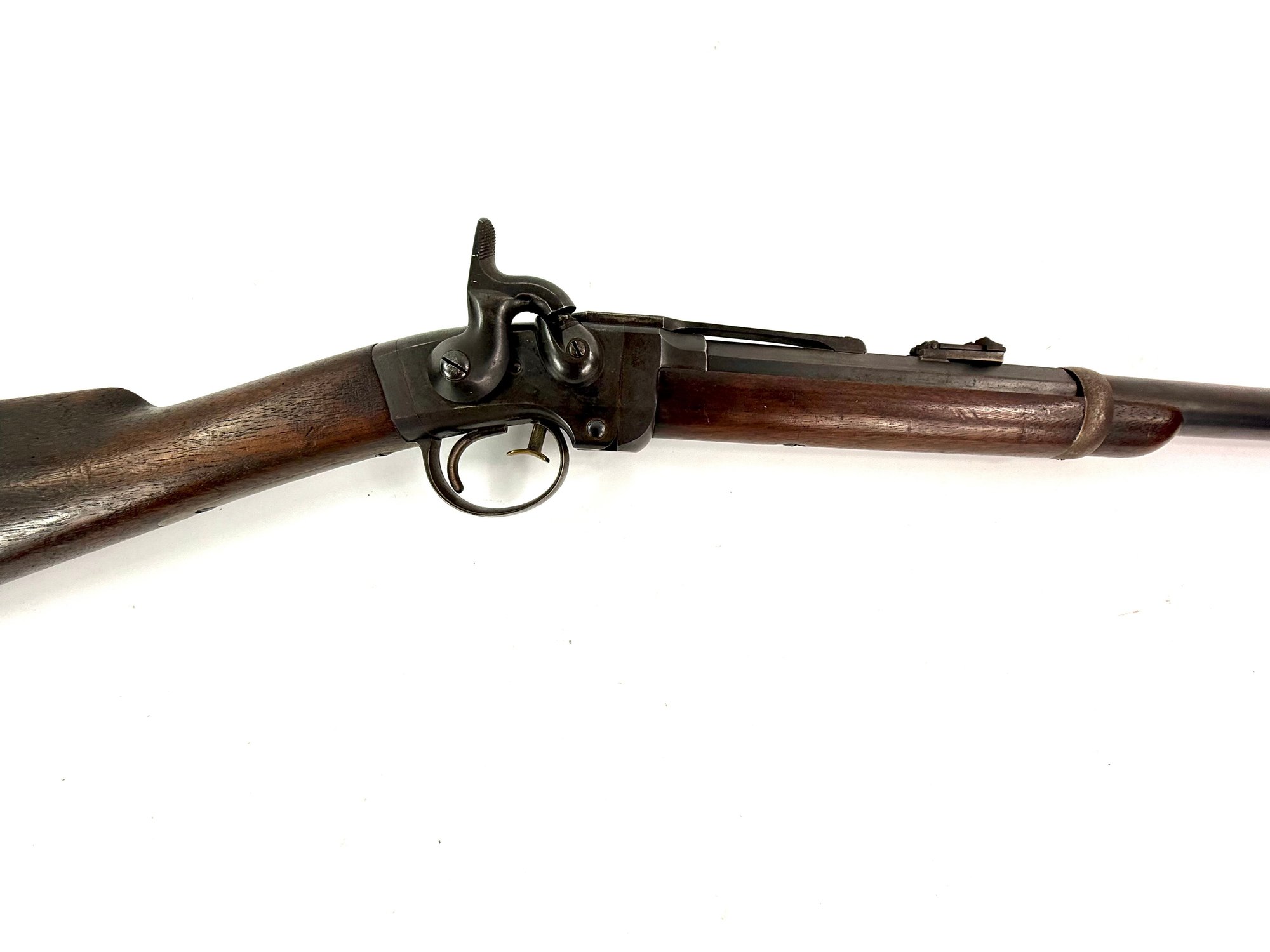 Manufactured by Mass Arms company, Chicopee Falls. Address POULTNEY & TRIMBLE Baltimore, USA. This excellent example has a walnut stock and original finish. Extremely clean barrel. All original parts with matching numbers. please see photos.