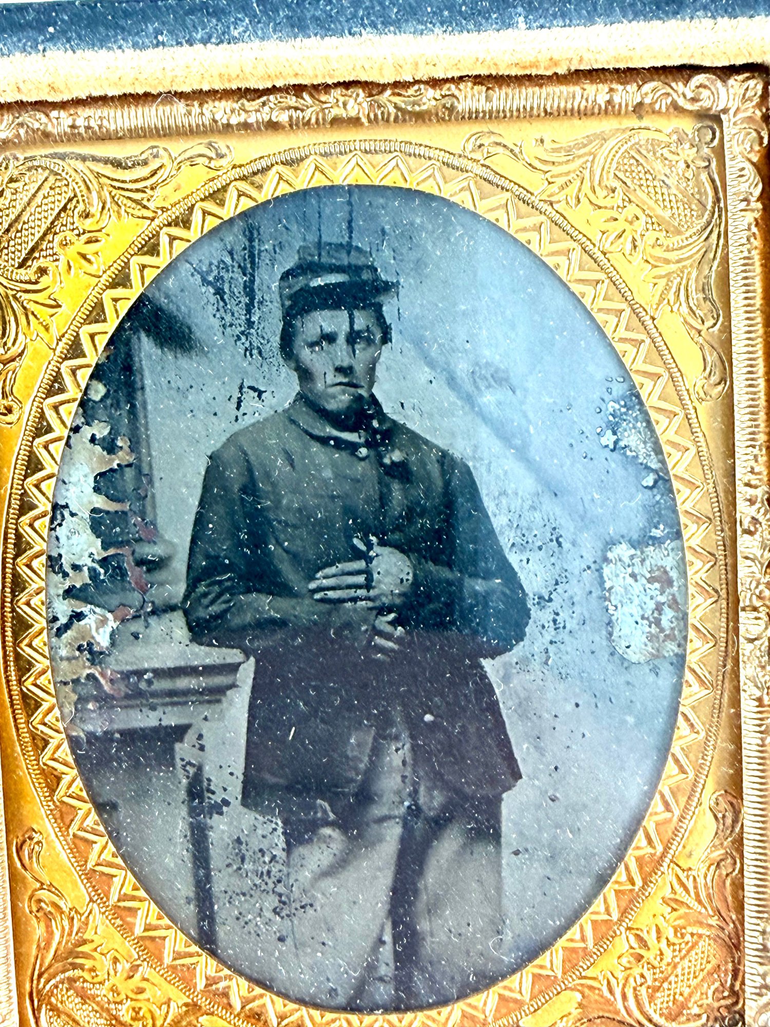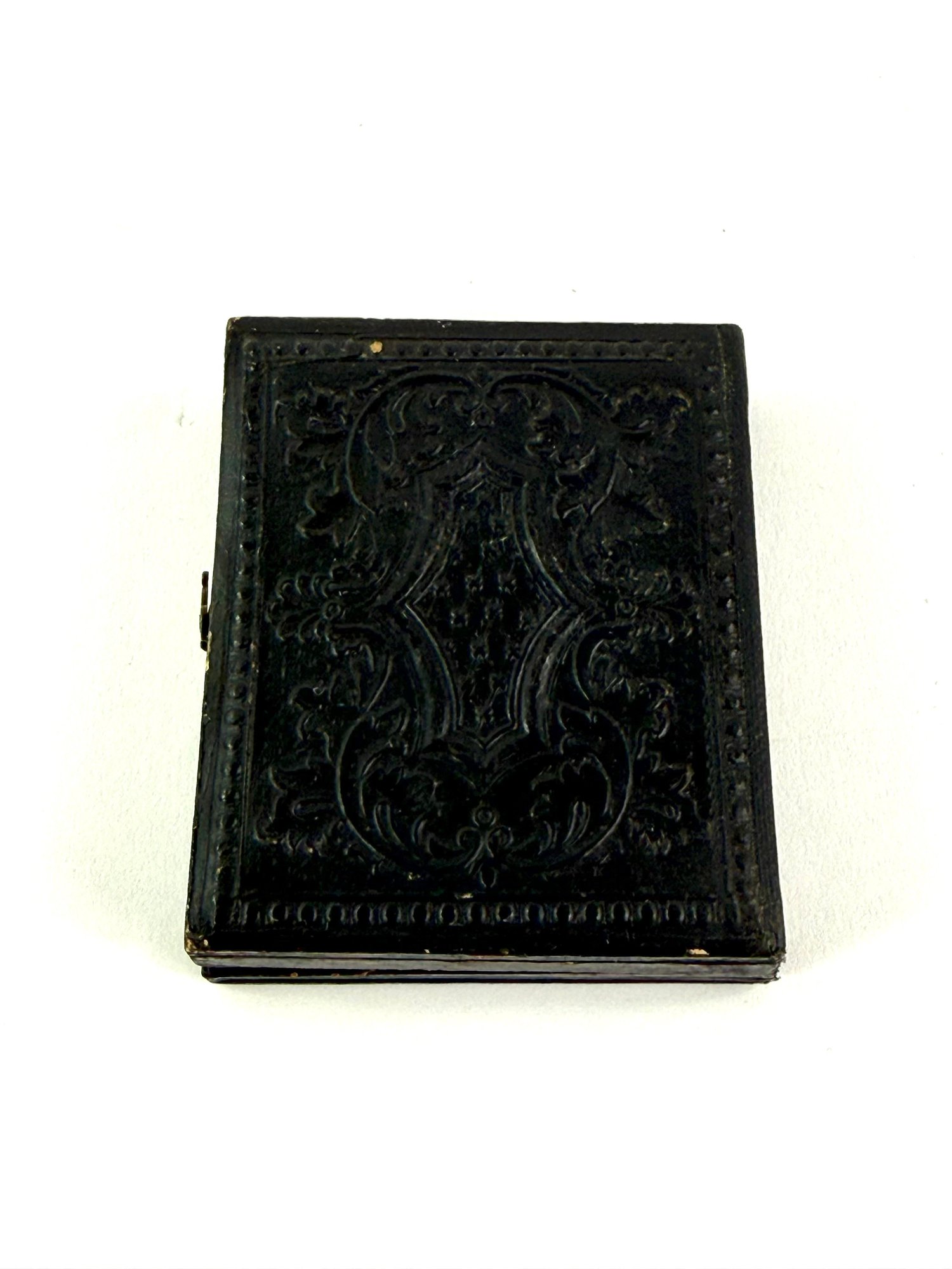 19th century tin type framed in a black decorative period case.