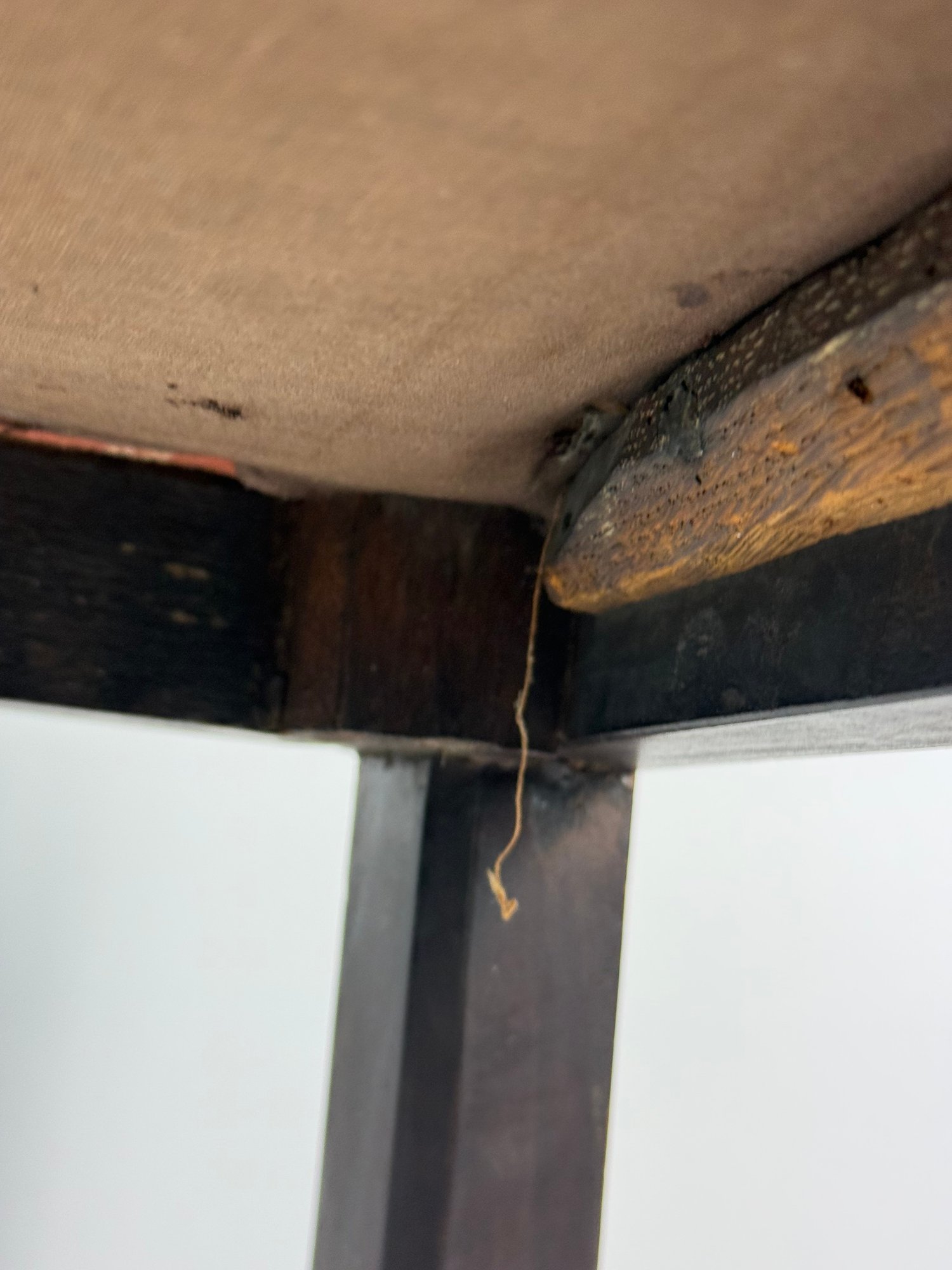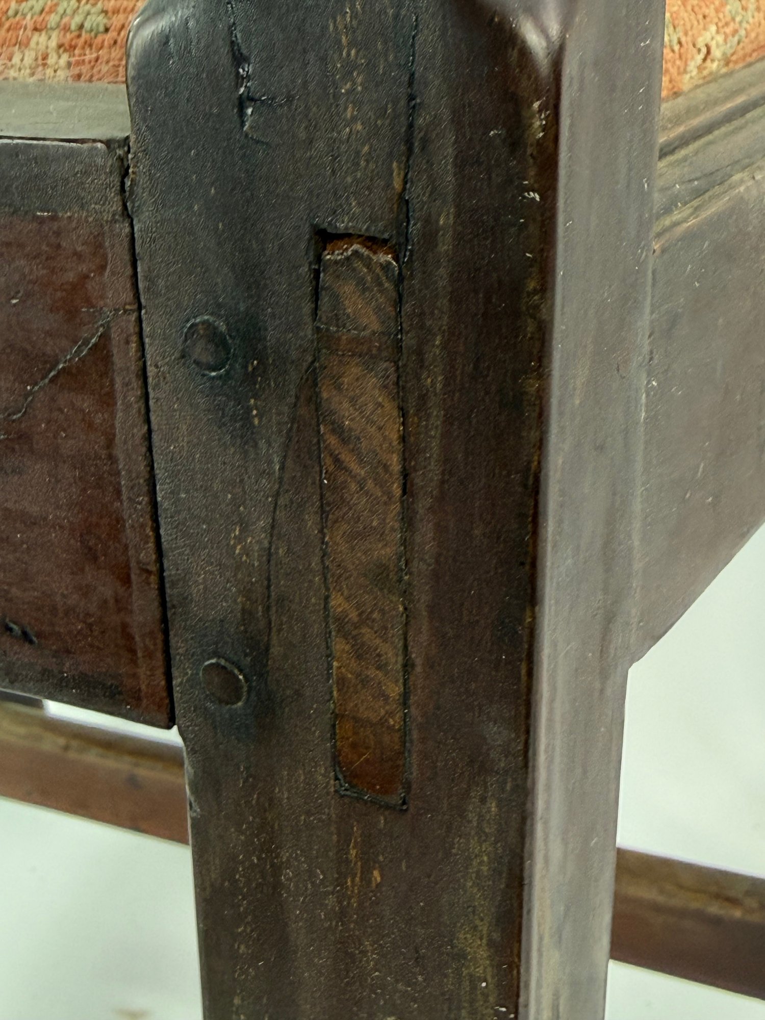 This early Chippendale chair has pegged legs with lathe marks inside. It has a wonderful surface. Replaced seat. Please see photos.