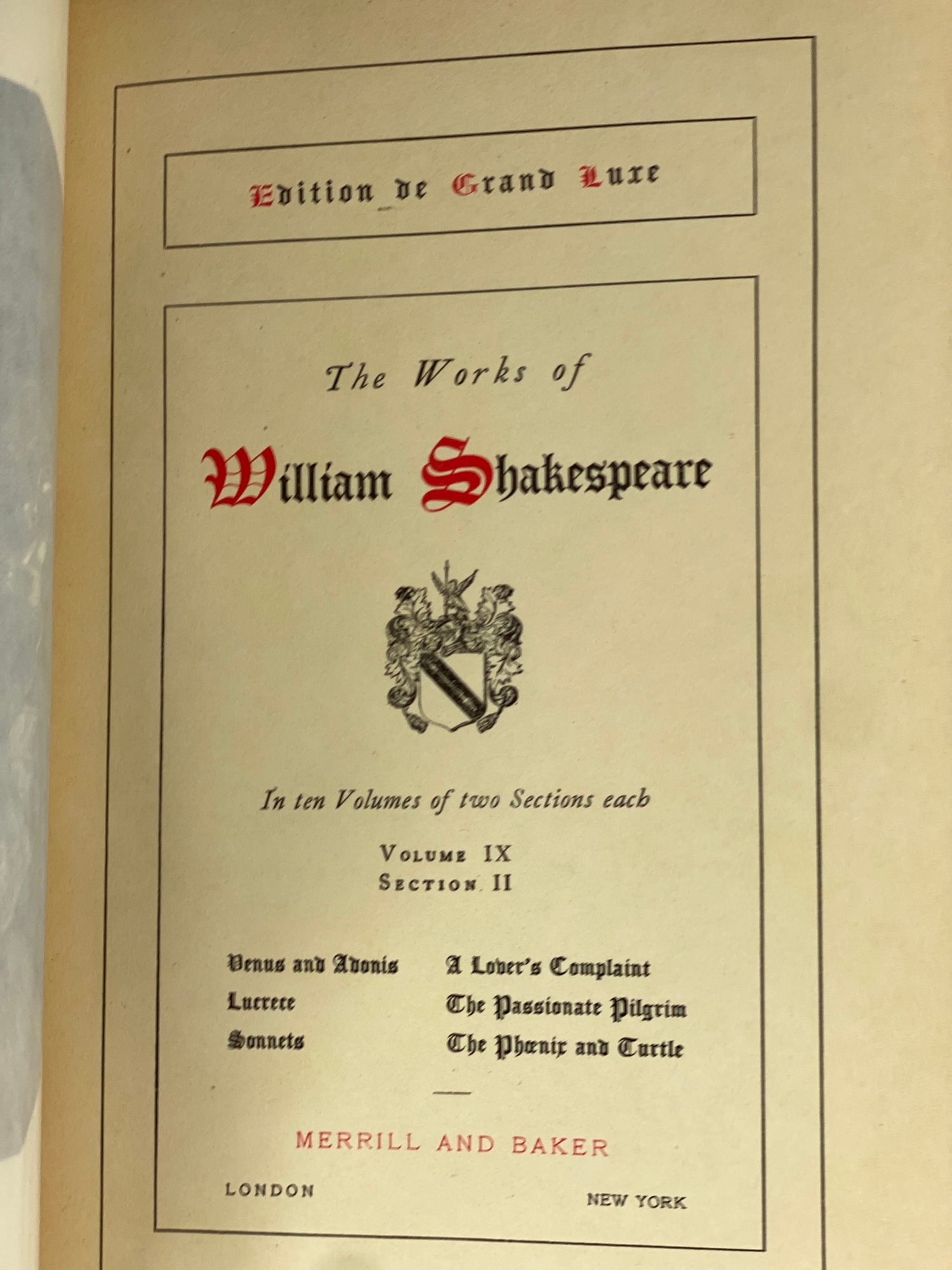Edition De Grand Luxe William Shakespeare Volume 1-10 Section 2