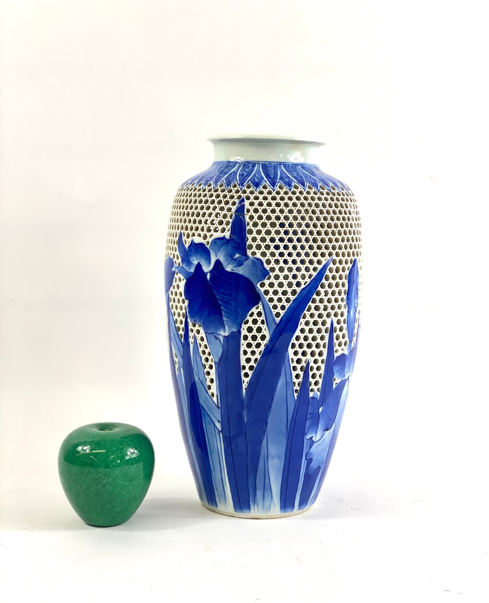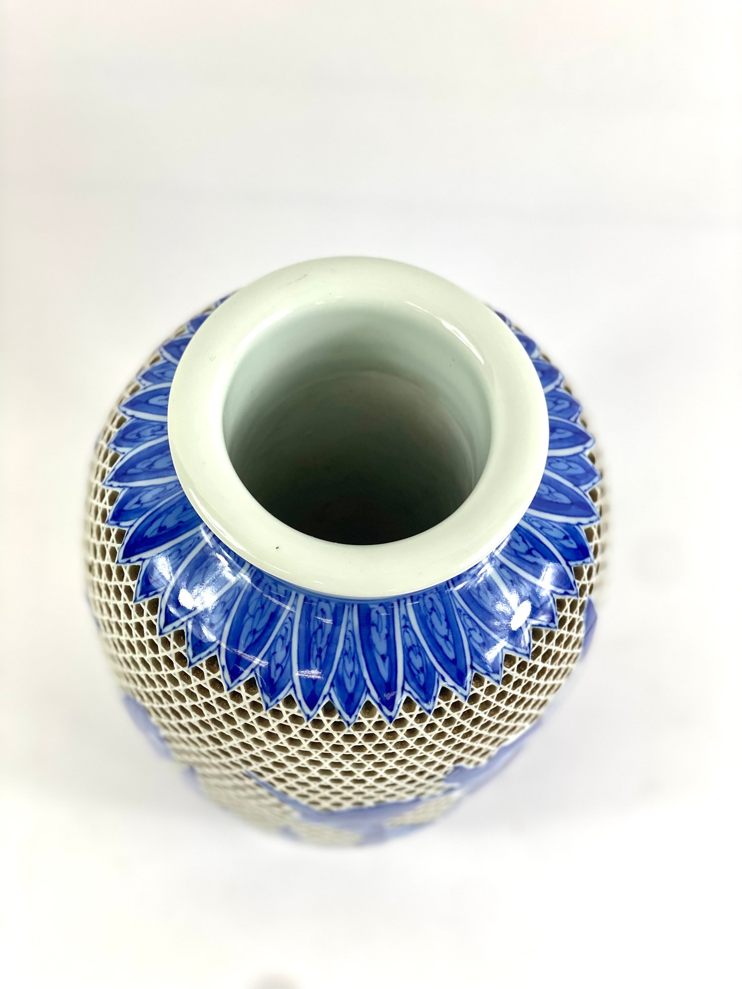 This vase is in excellent condition. With vibrant blue and white.