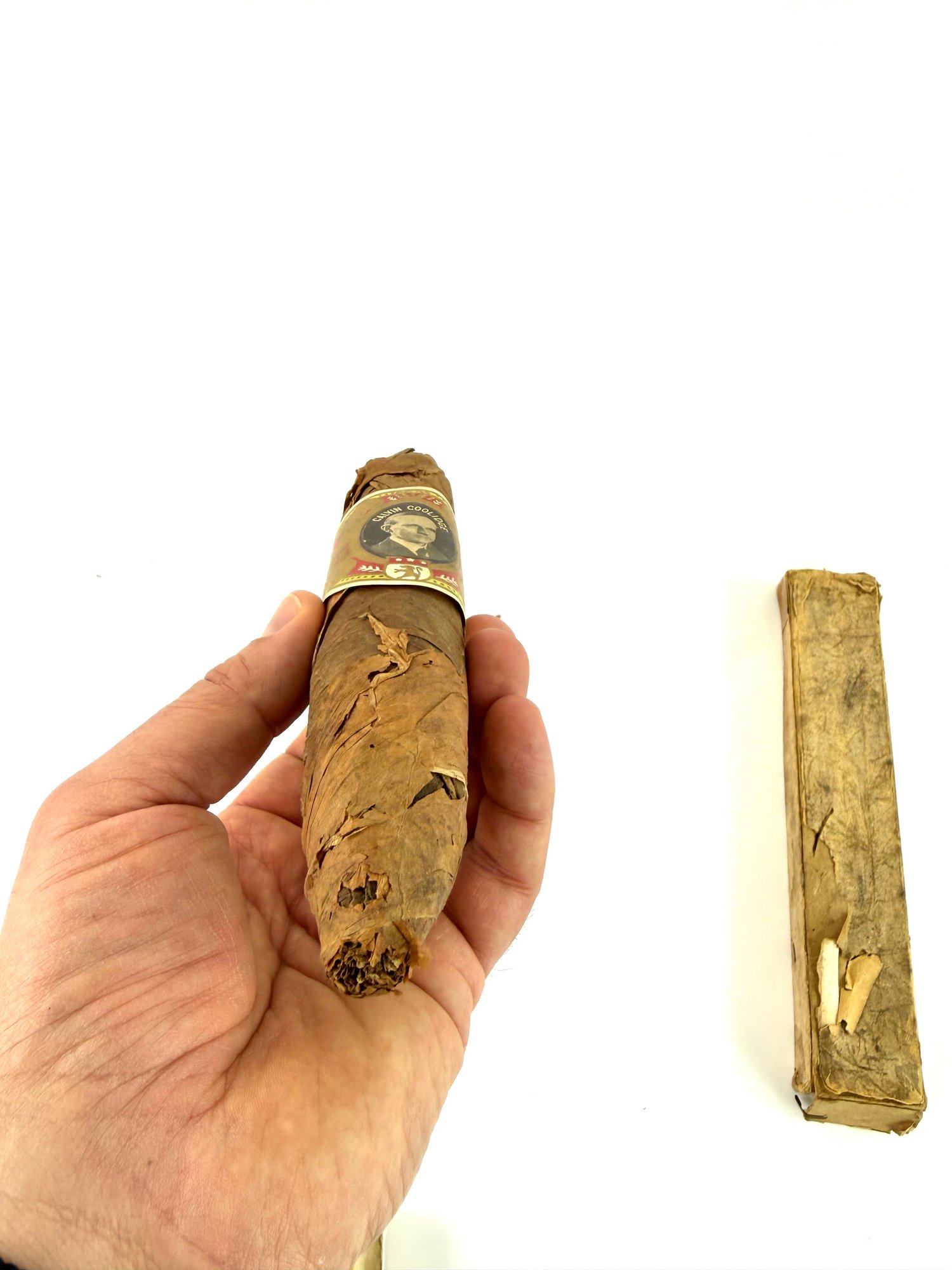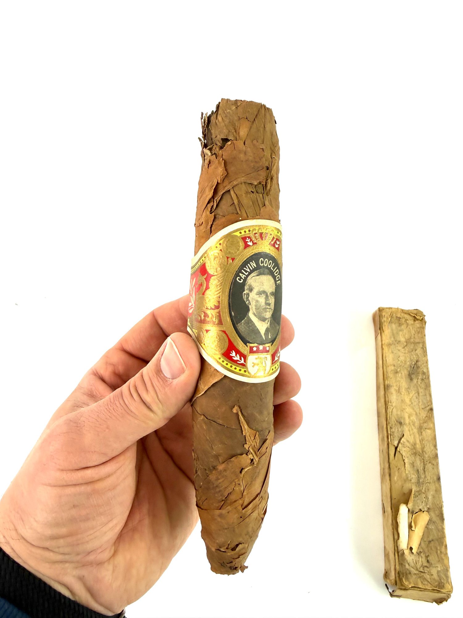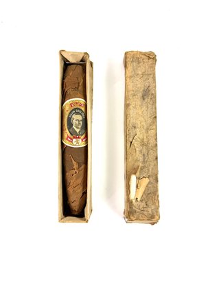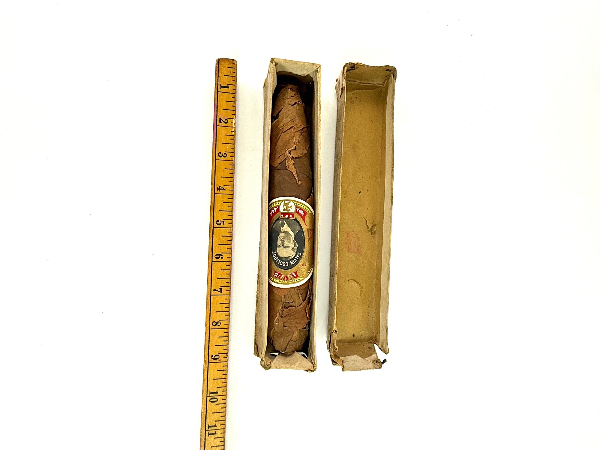 Calvin Coolidge was the last president to visit Cuba before Obama in March of 2016. There were not many promotional items made, including this large stogie with its original box and sticker of Calvin Coolidge.