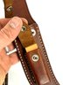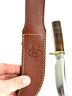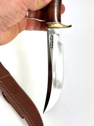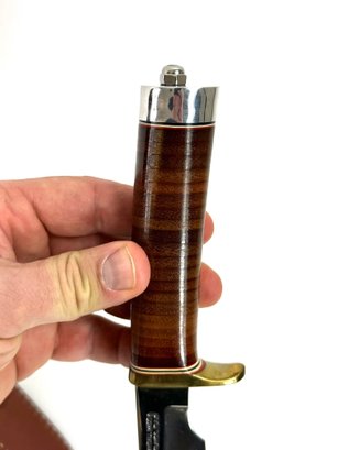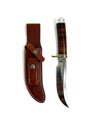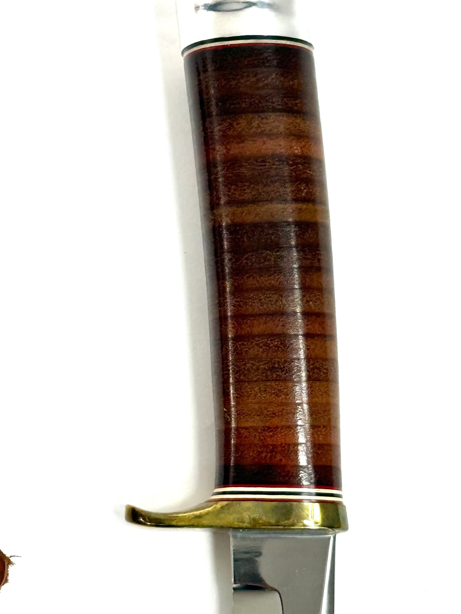 This knife is in excellent condition with its original sheath and sharpening stone. It’s brass guard and blade are some of the best quality made in the business.