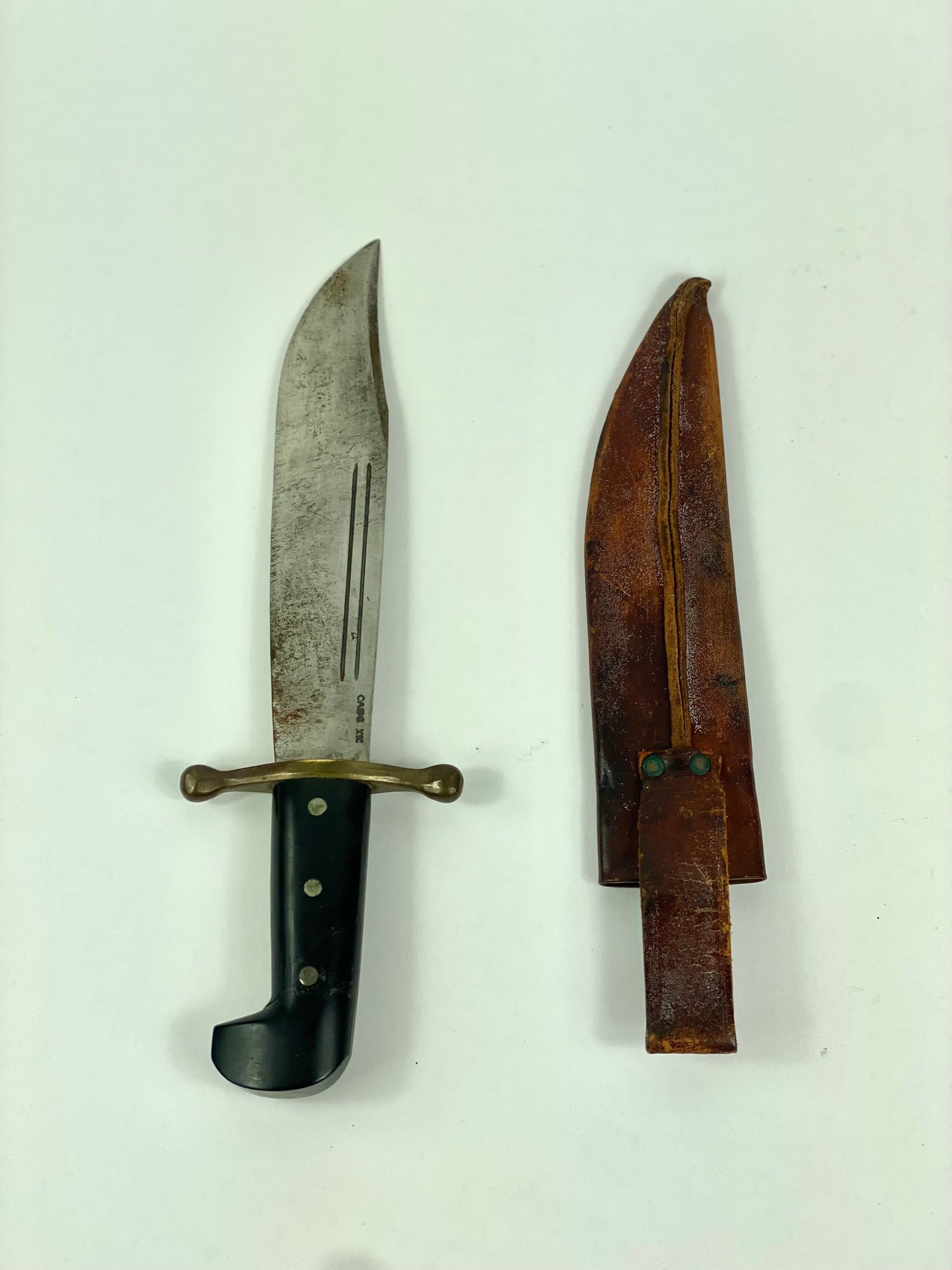 Original WWII Case XX V-44 Fighting Bowie Knife With Original Leather Sheath