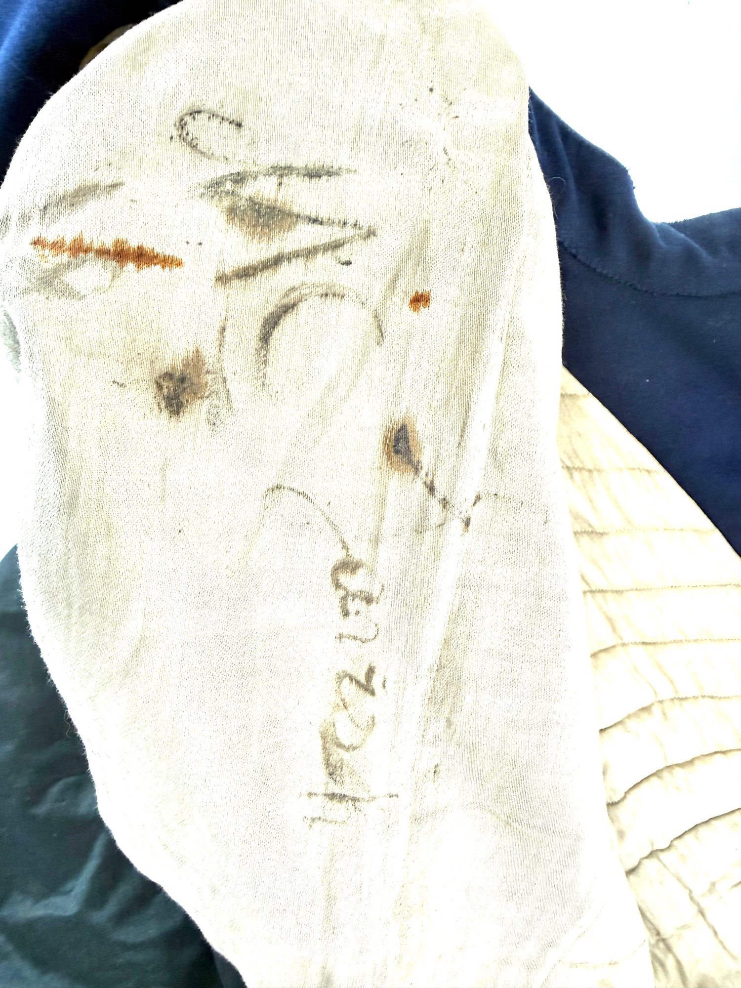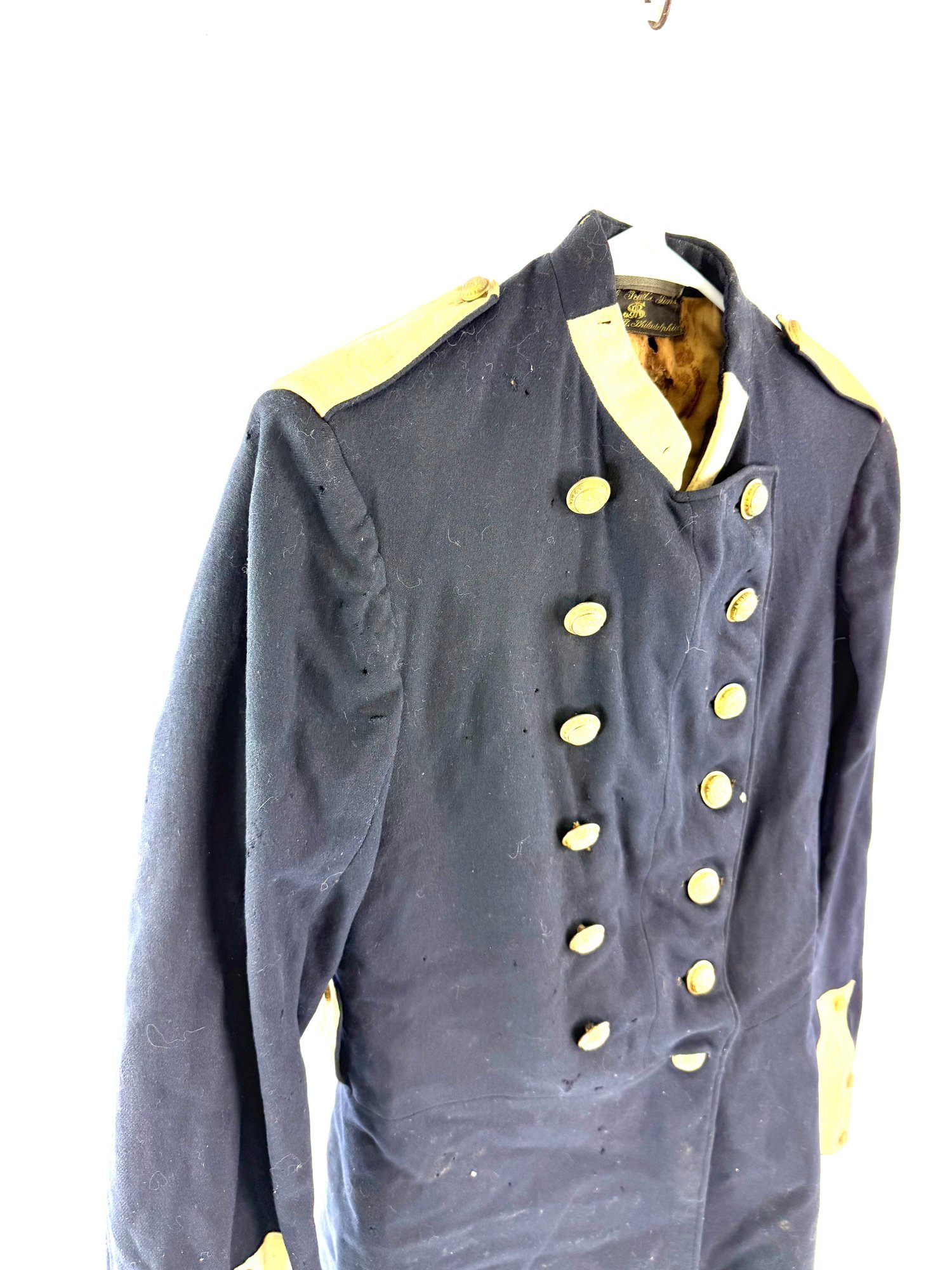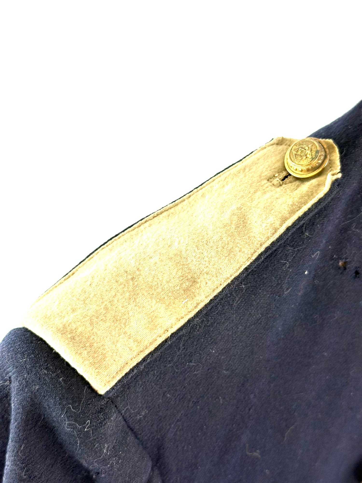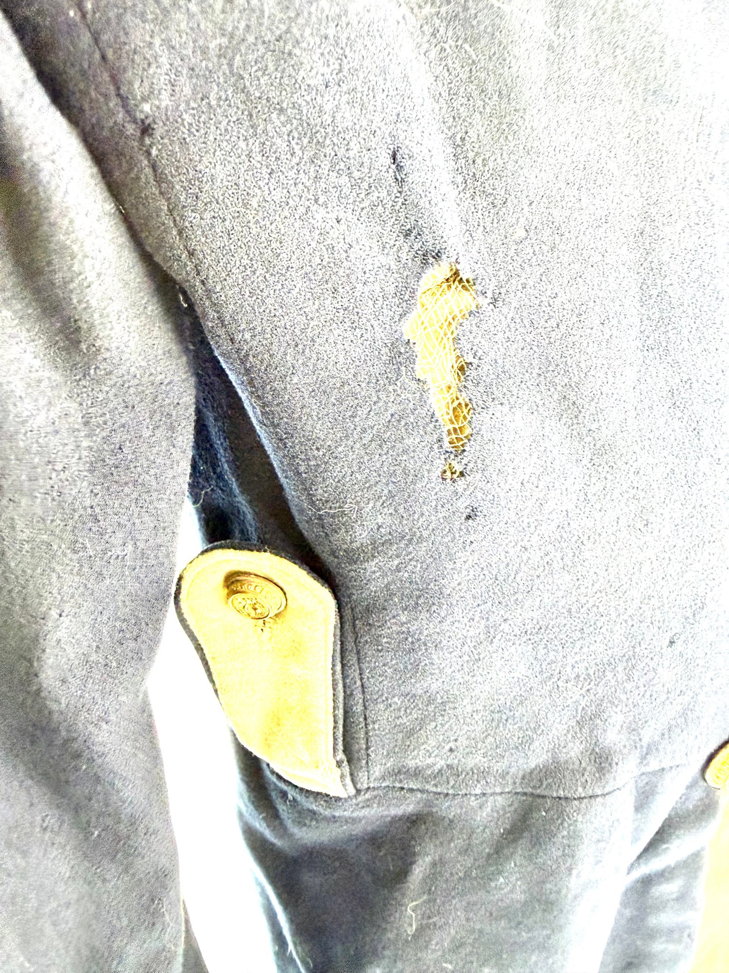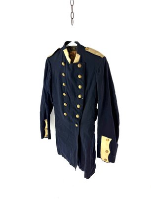 This jacket has white shoulder straps, collar and sleeve accents. North Carolina buttons with a Philadelphia label. Please see photos for condition.