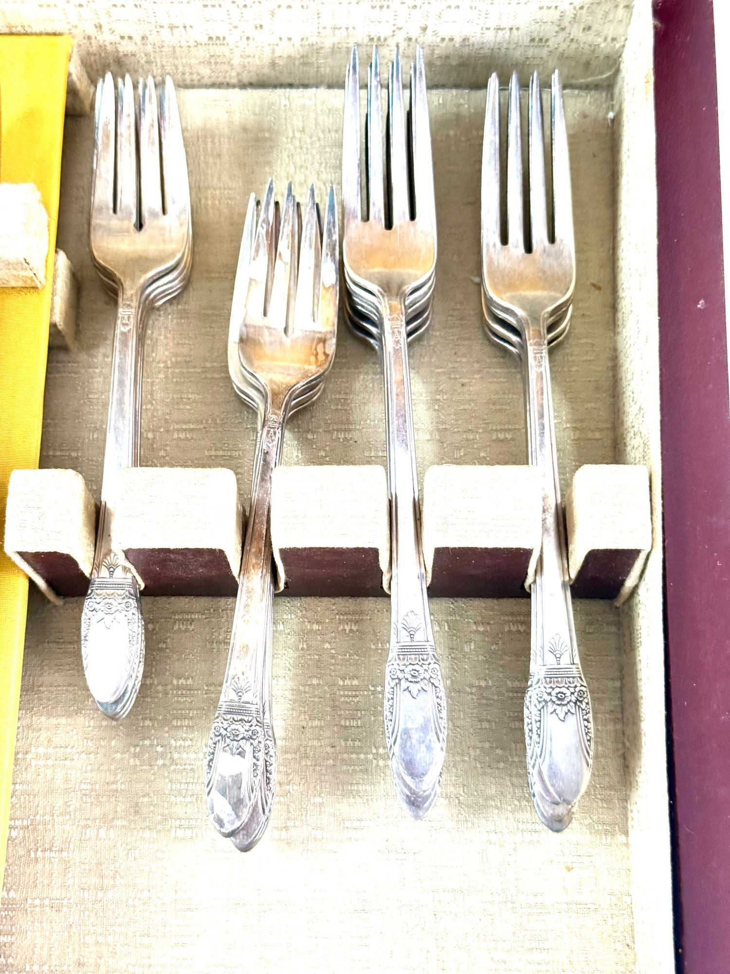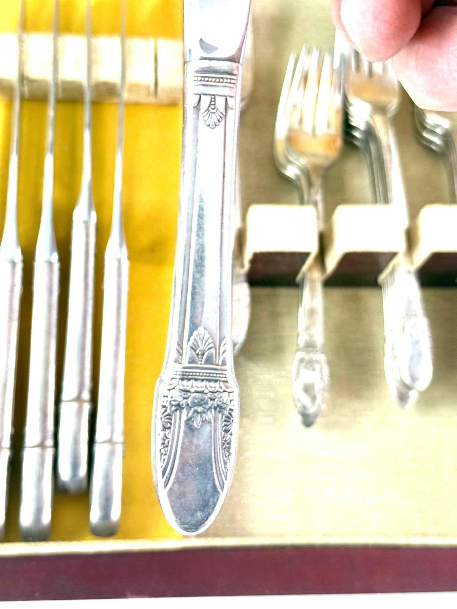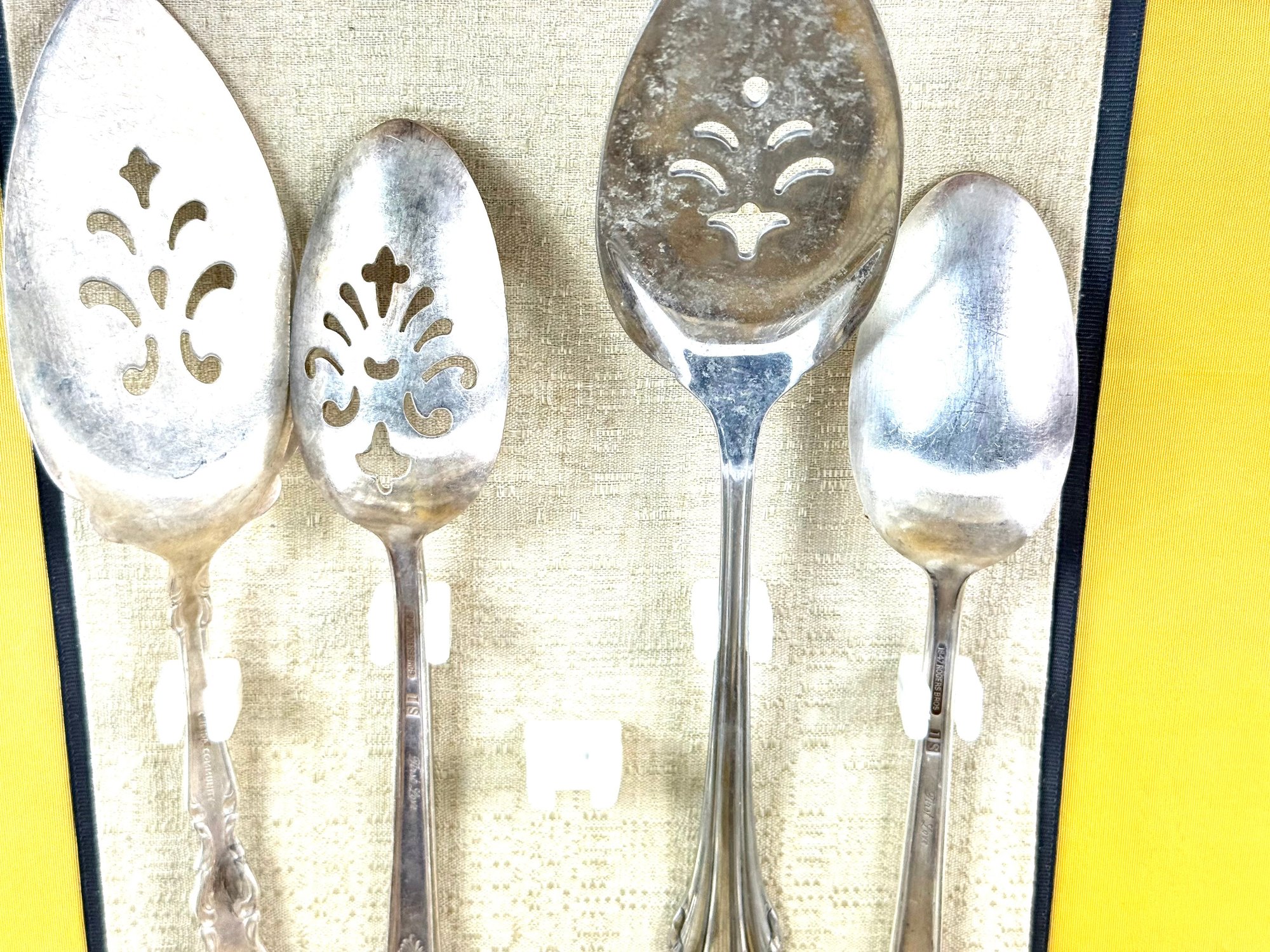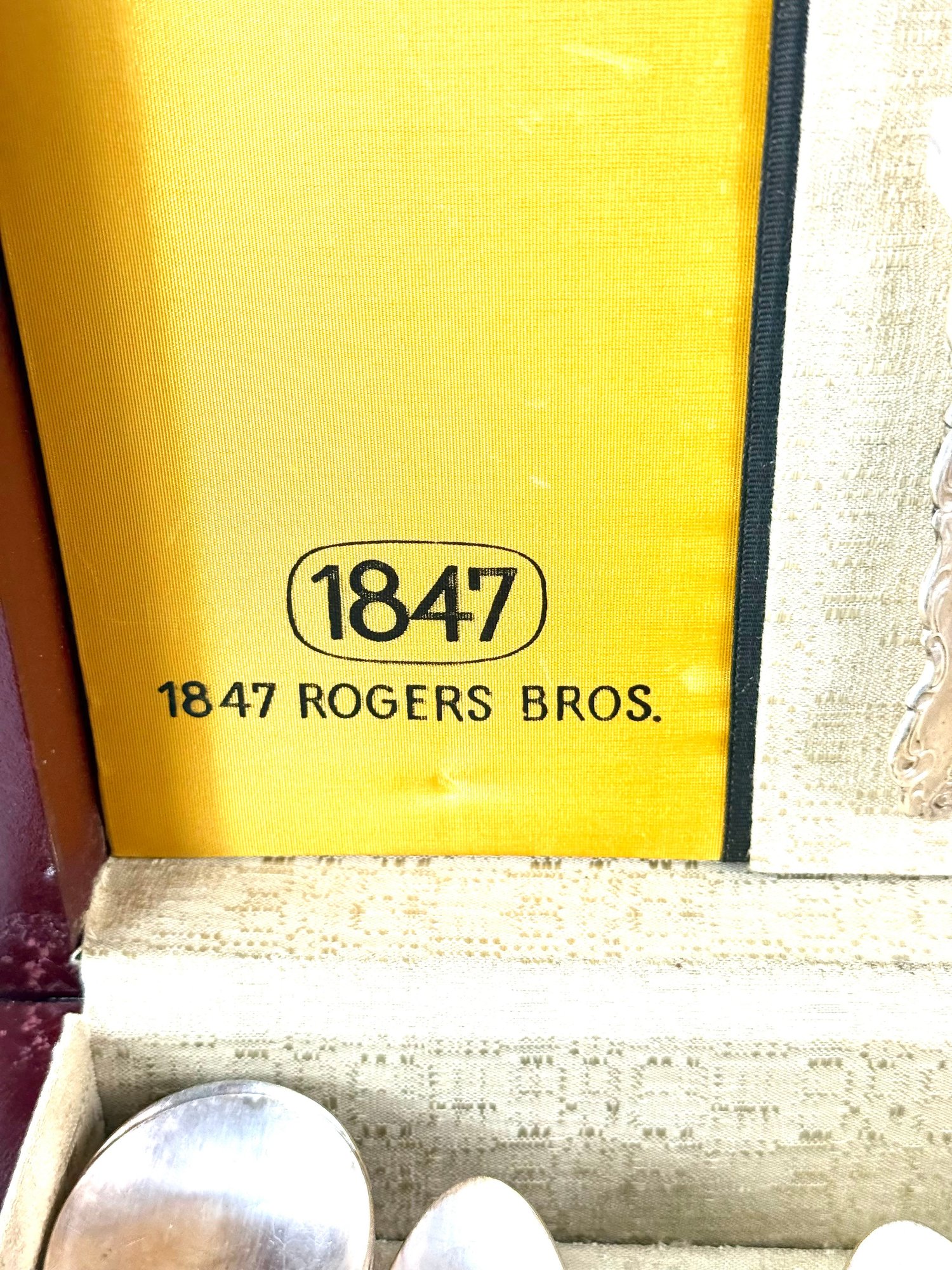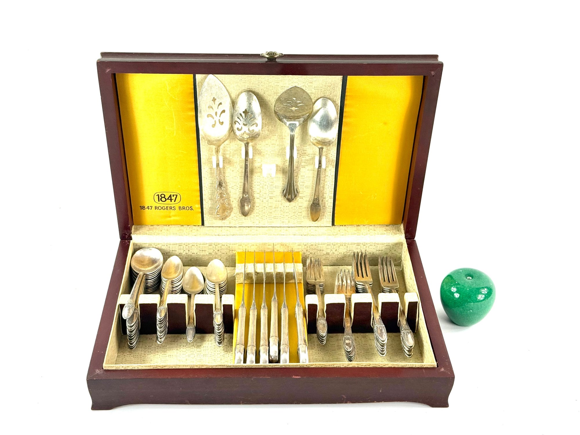 1847 pattern place setting for 12 with serving spoons.