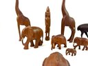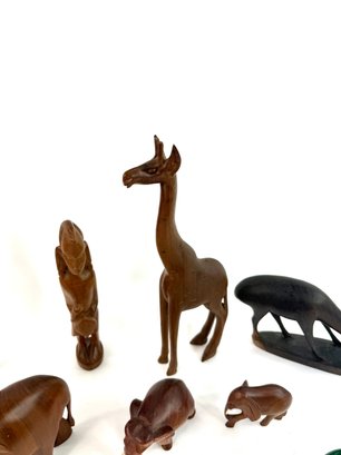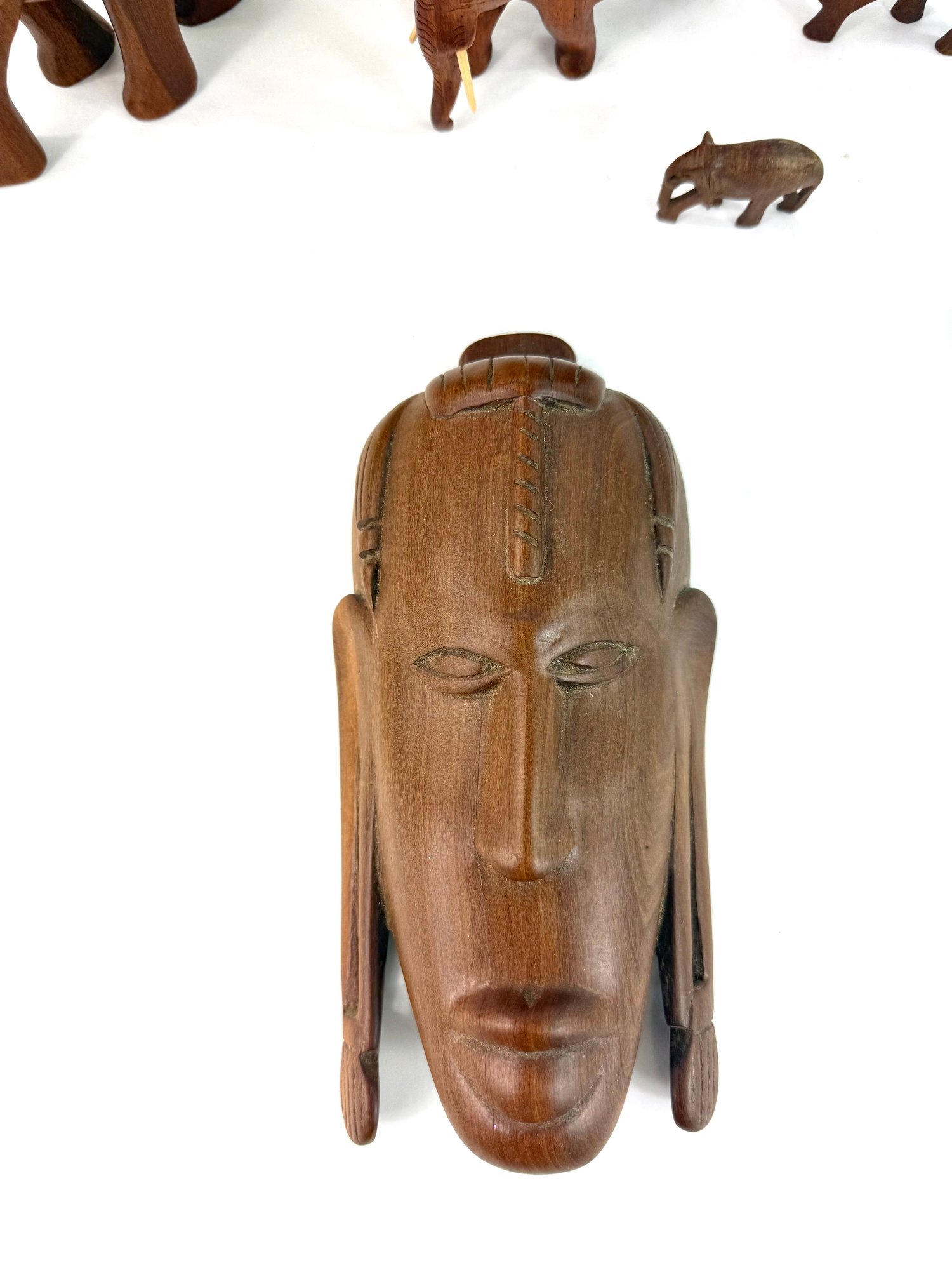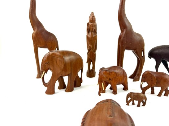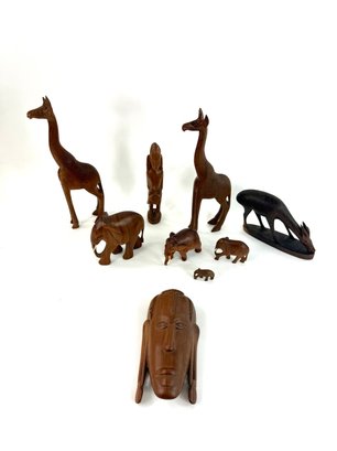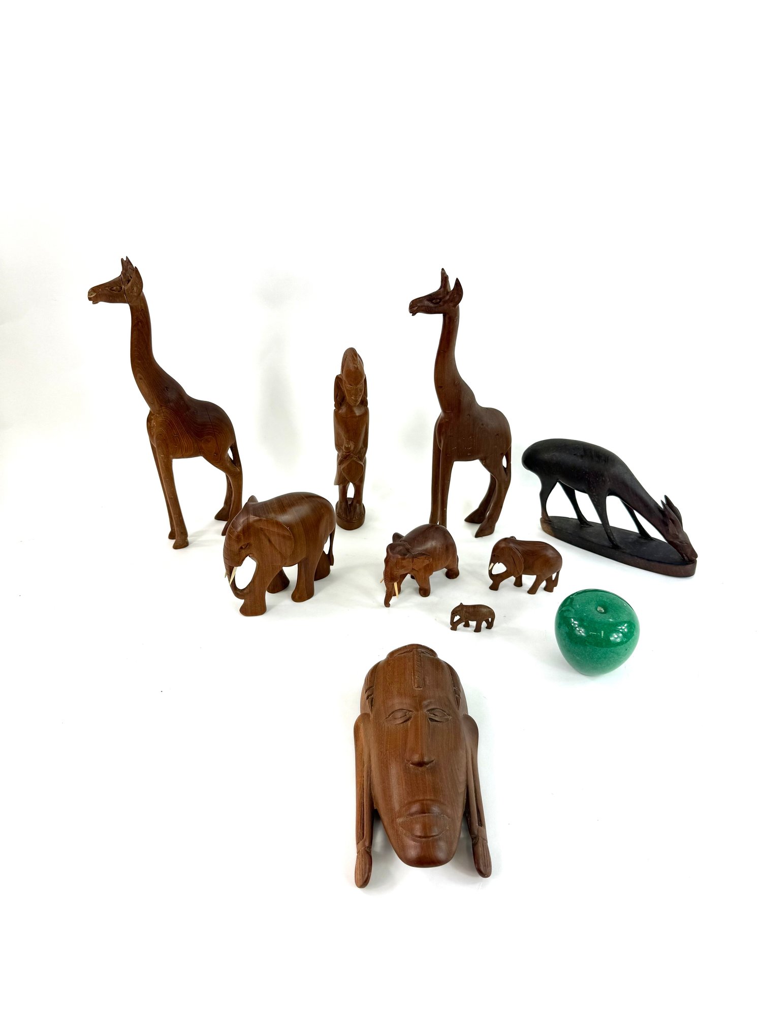 Well, executed hand carved giraffes, elephants with figure and mask. Please see photos.