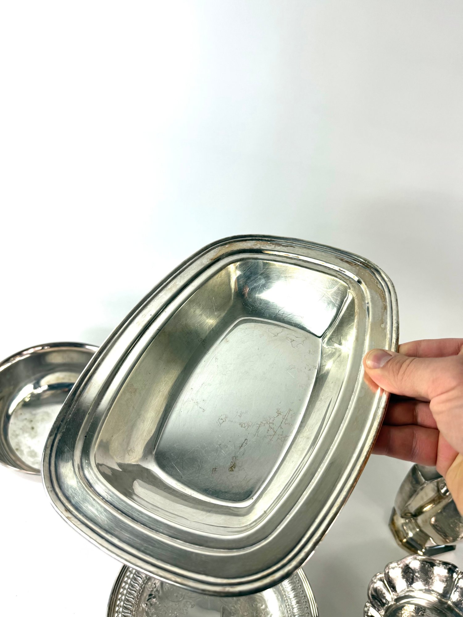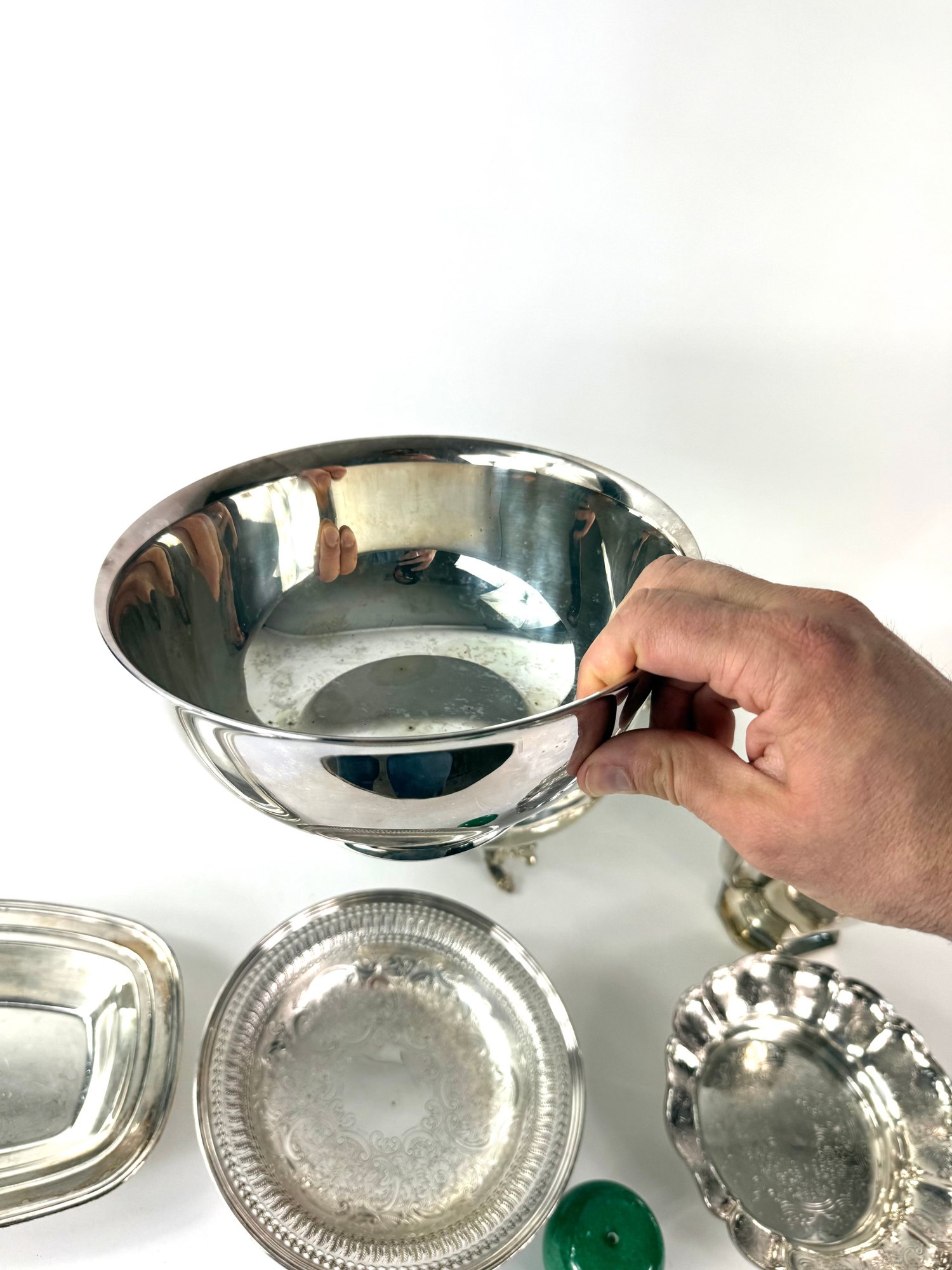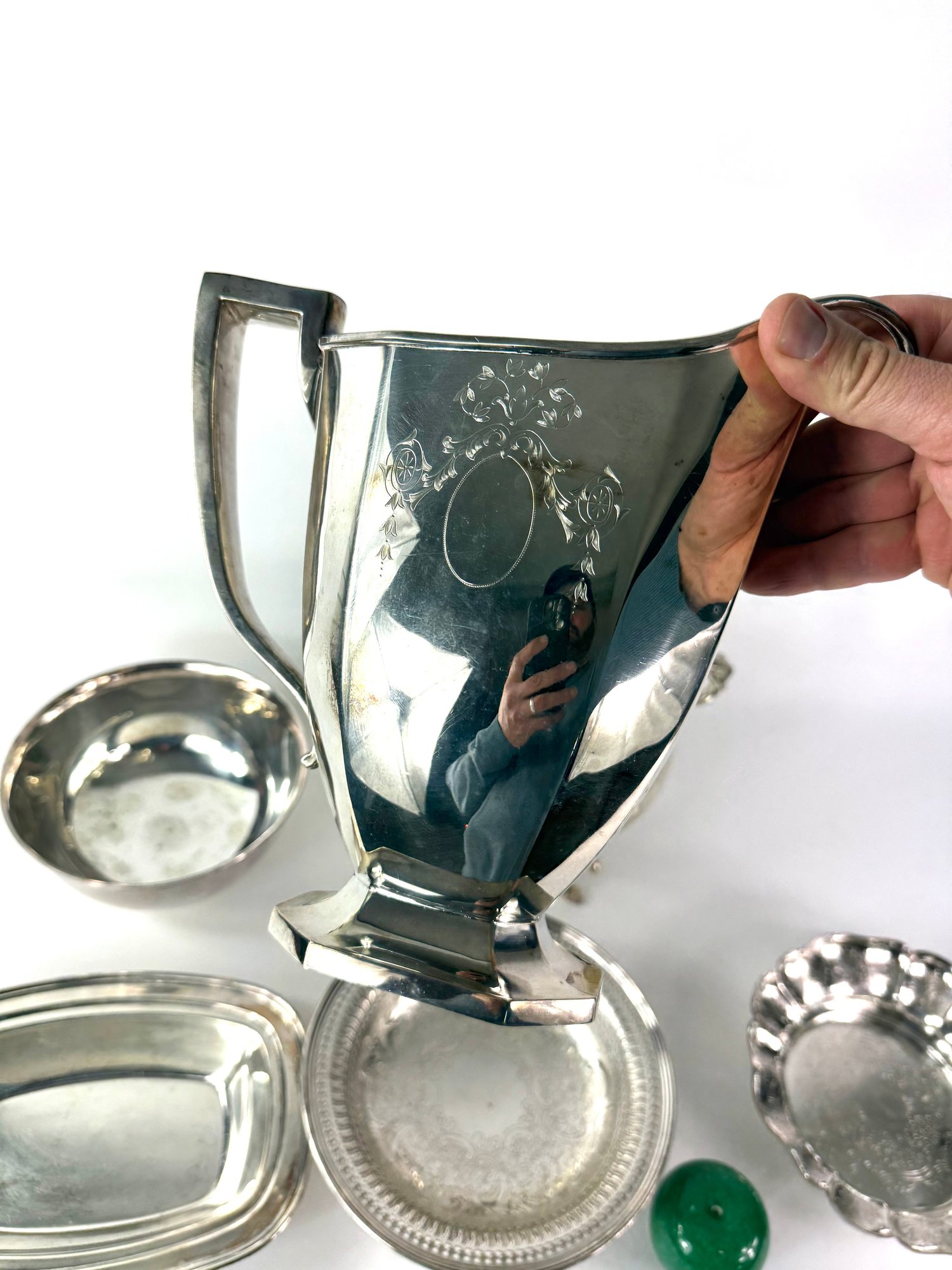 This group includes large water pitcher, chafing dish and three bowls.