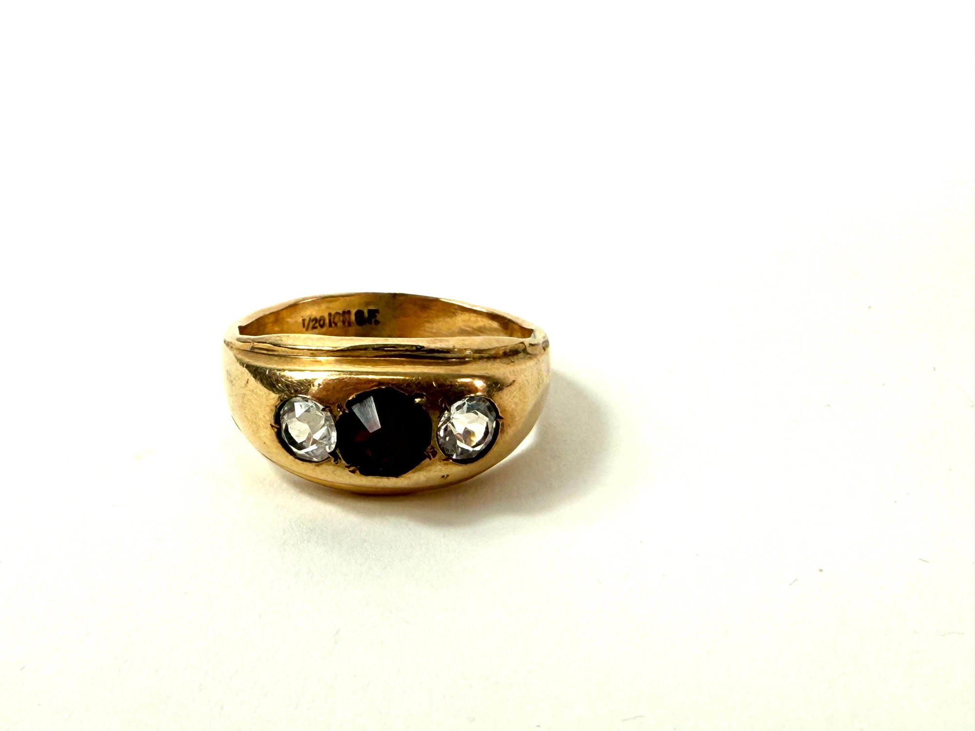 One baby ring and one with red and glass stones.