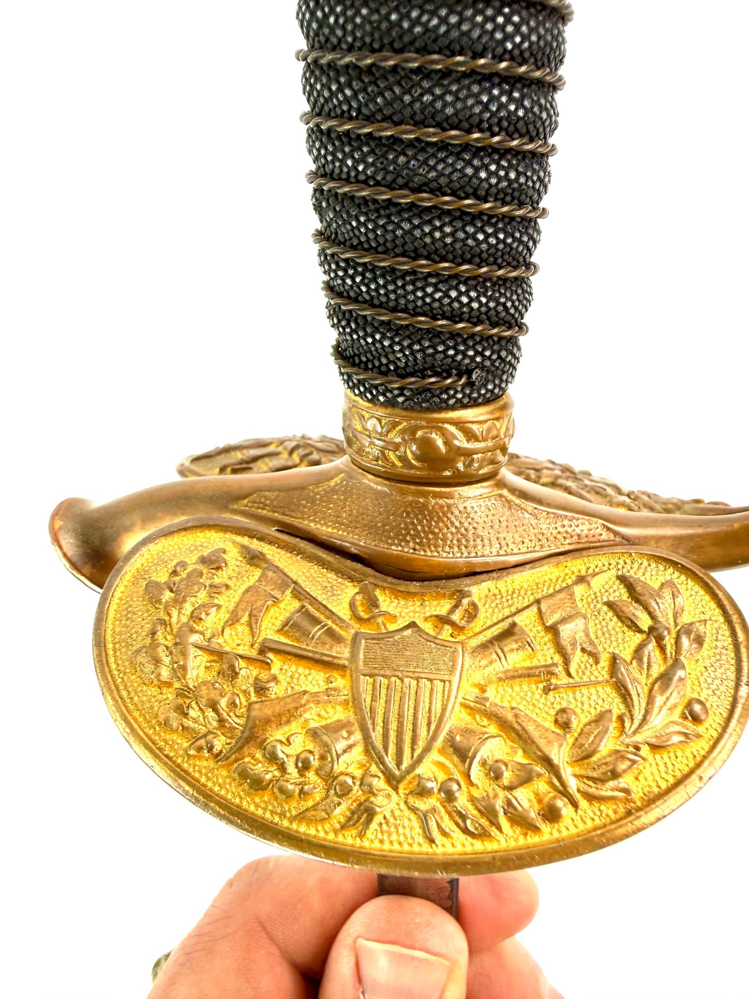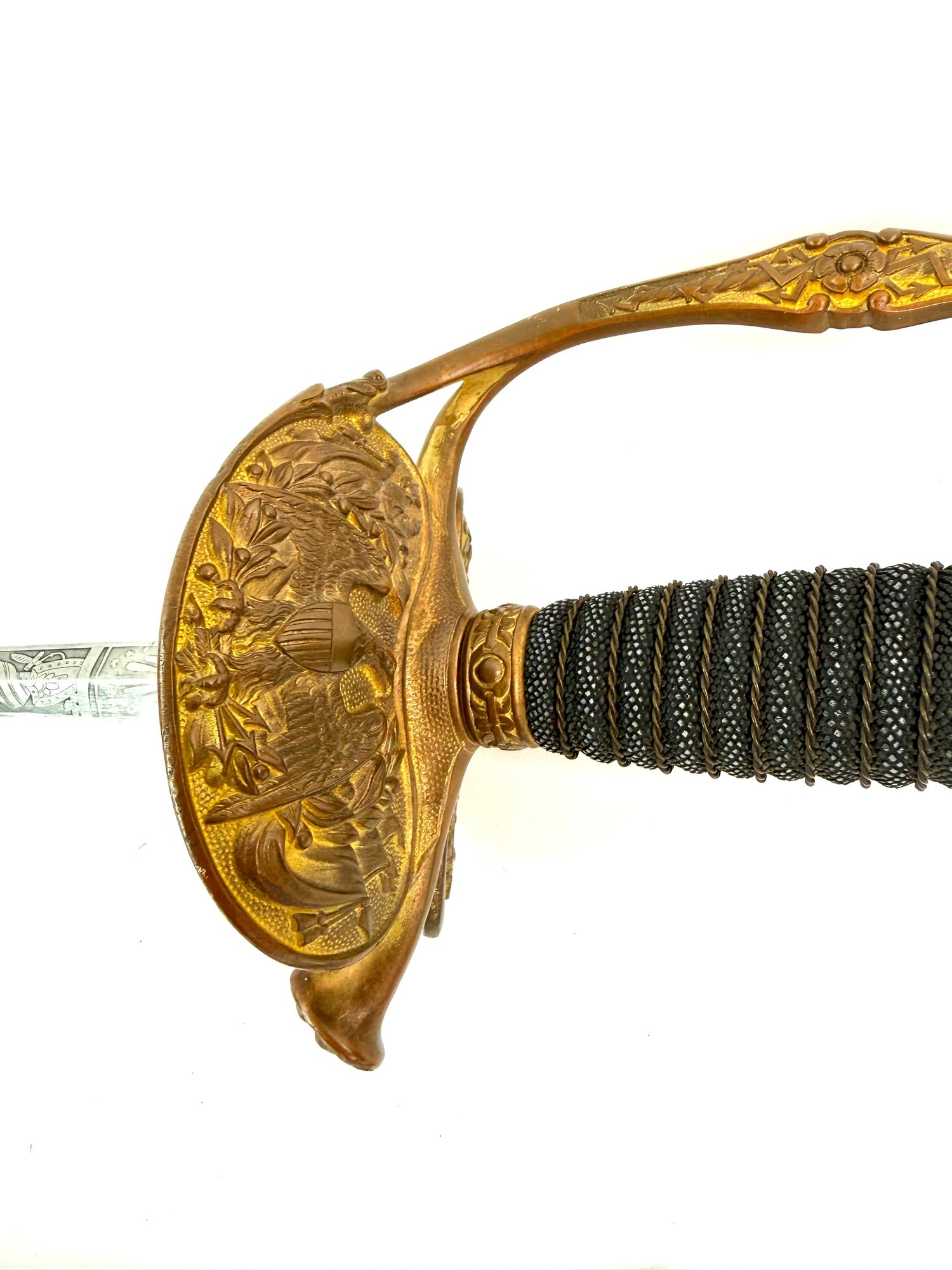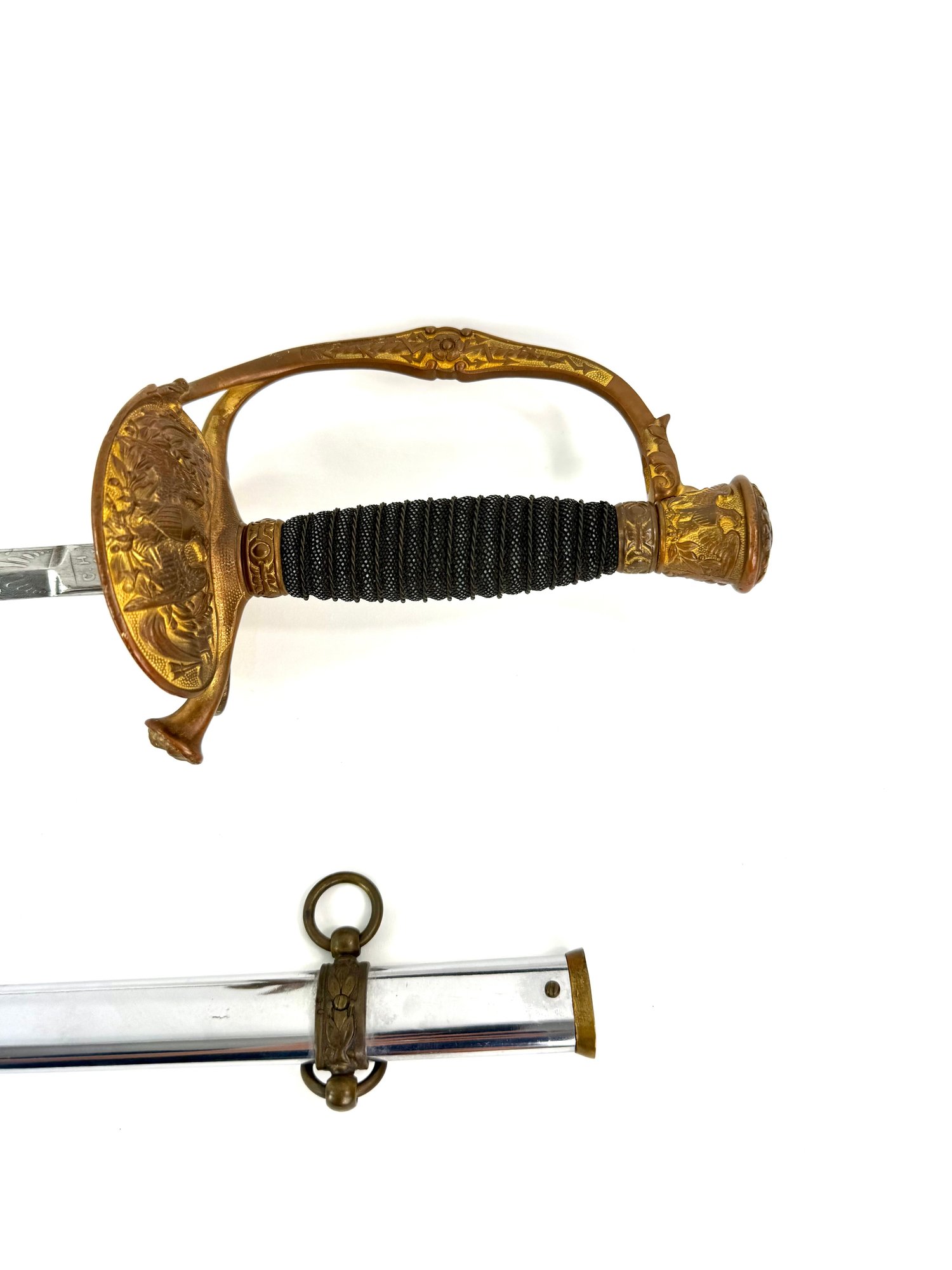 Made by C.H Case Hartford, Connecticut the sword is in good condition with its engraved sword and guard holding showing an American shield and eagles. Please see photos.